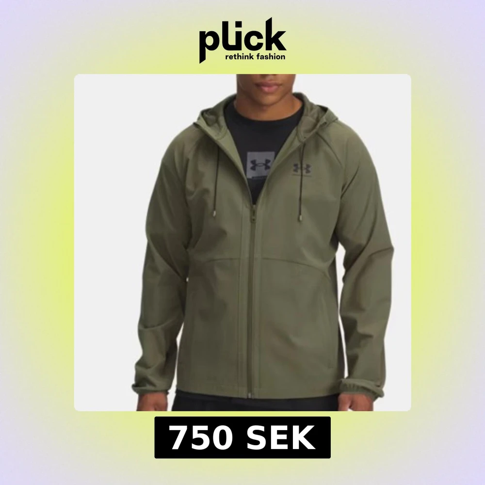 Snygg grön vindjacka från Under Armour med huva och dragkedja. Perfekt för utomhusaktiviteter med sin lätta och funktionella design. Jackan har långa ärmar och en stilren look.