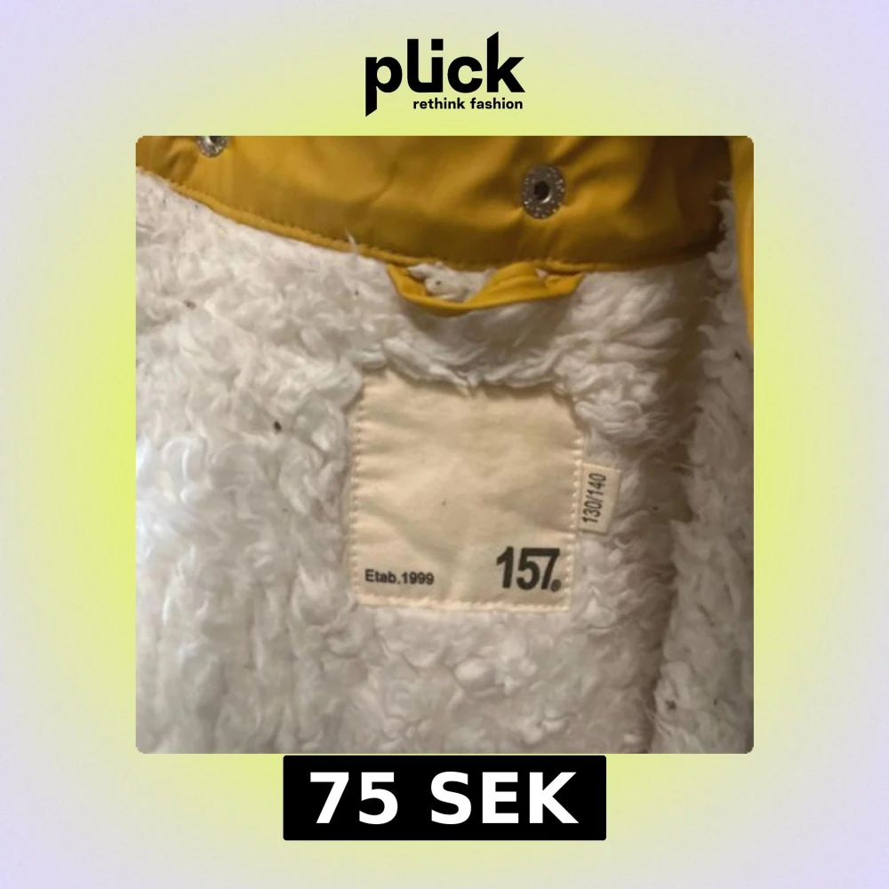 Gul teddyjacka från 157 med vit fluffig insida och huva. Jackan har tryckknappar i silver och stora fickor framtill. Perfekt för kalla dagar med sitt mysiga teddyfoder och snygga streetstil.