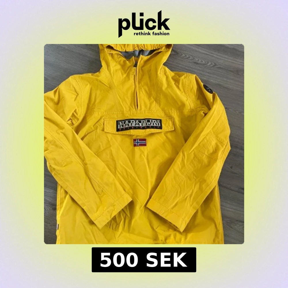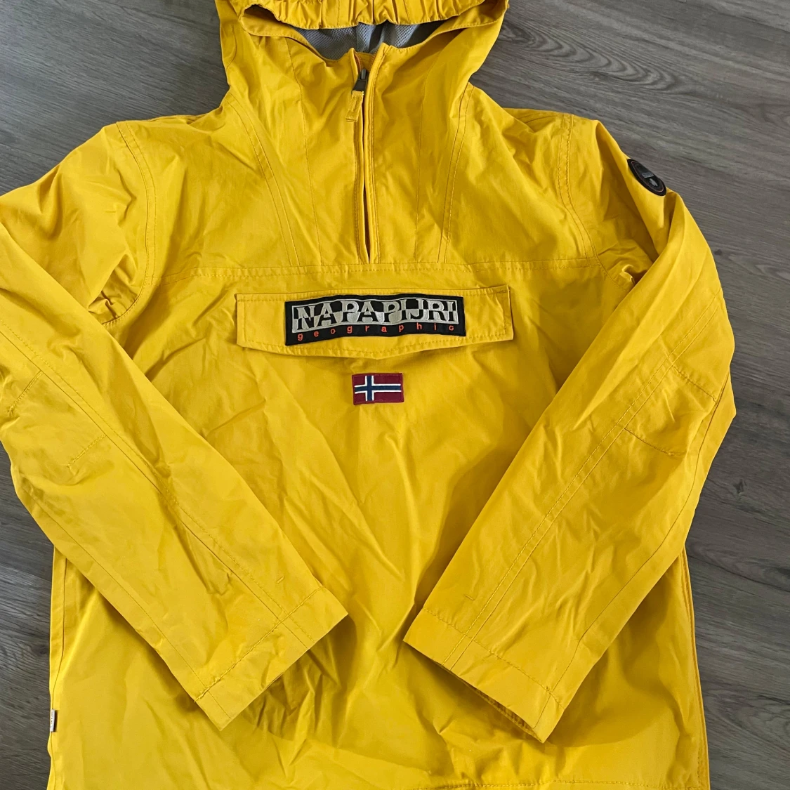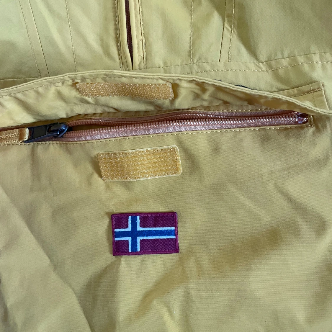 Snygg gul skid/vindjacka från Napapijri med huva och halv dragkedja framtill. Jackan har stor snygg logga på bröstet, samt praktisk magficka med dragkedja. Perfekt för dig som vill sticka ut med färg och stil. Stl 14 162cm. Nypris ca 1500-2000, mitt pris 350. Helt nytt skick endast använd en gång, har bara hängt i garderoben. Priset är såklart diskuterbart. Bara höra av sig vid frågor 😀.