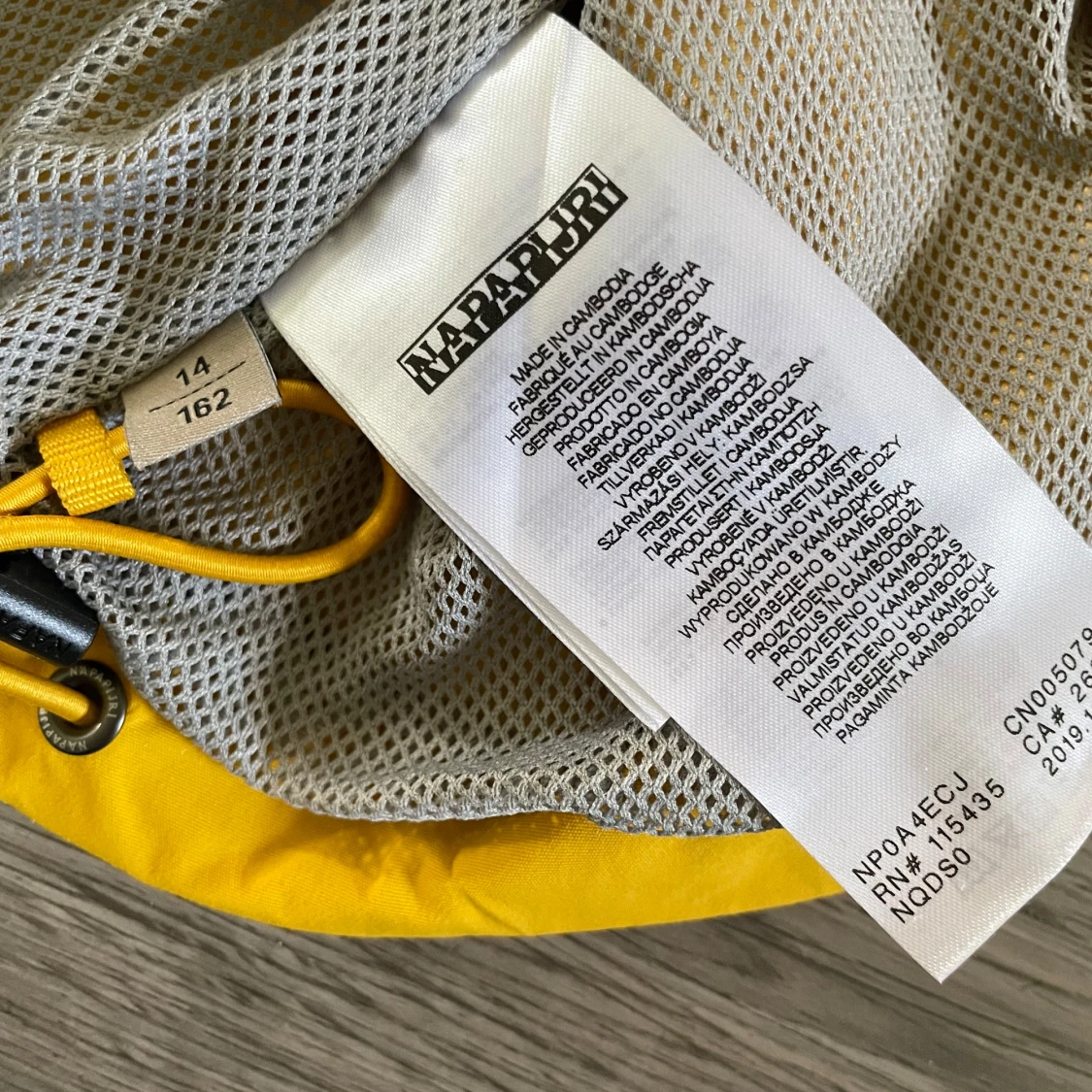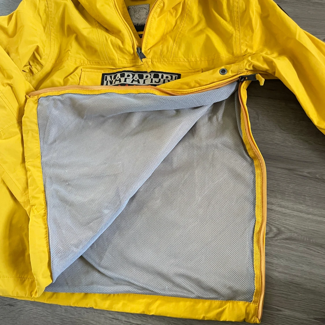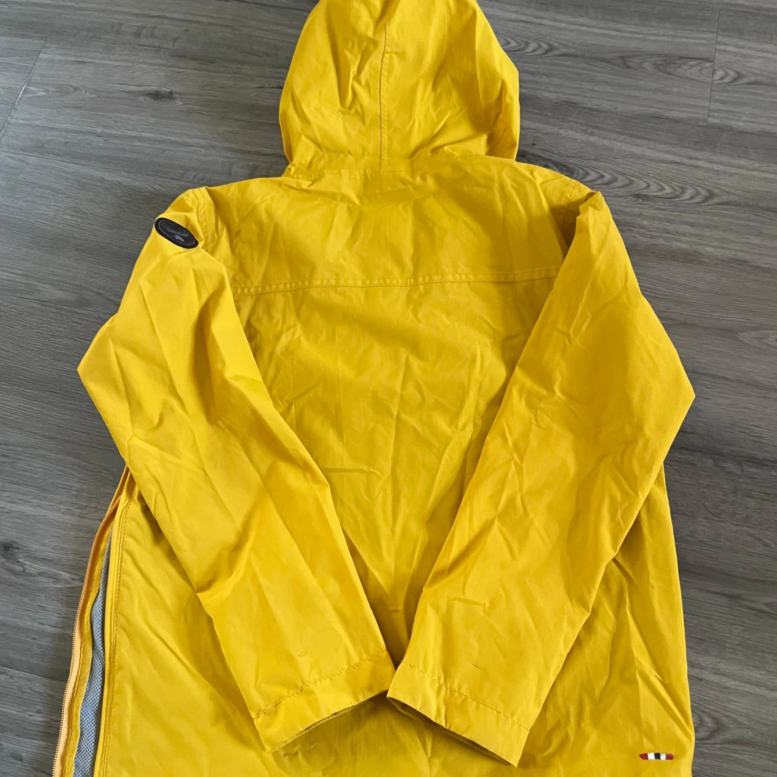 Snygg gul skid/vindjacka från Napapijri med huva och halv dragkedja framtill. Jackan har stor snygg logga på bröstet, samt praktisk magficka med dragkedja. Perfekt för dig som vill sticka ut med färg och stil. Stl 14 162cm. Nypris ca 1500-2000, mitt pris 350. Helt nytt skick endast använd en gång, har bara hängt i garderoben. Priset är såklart diskuterbart. Bara höra av sig vid frågor 😀.
