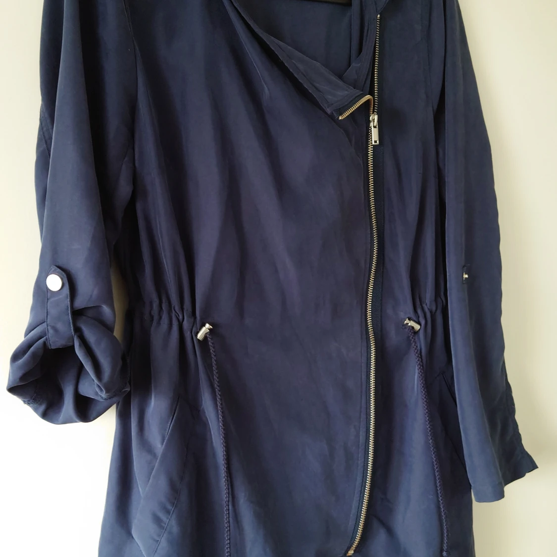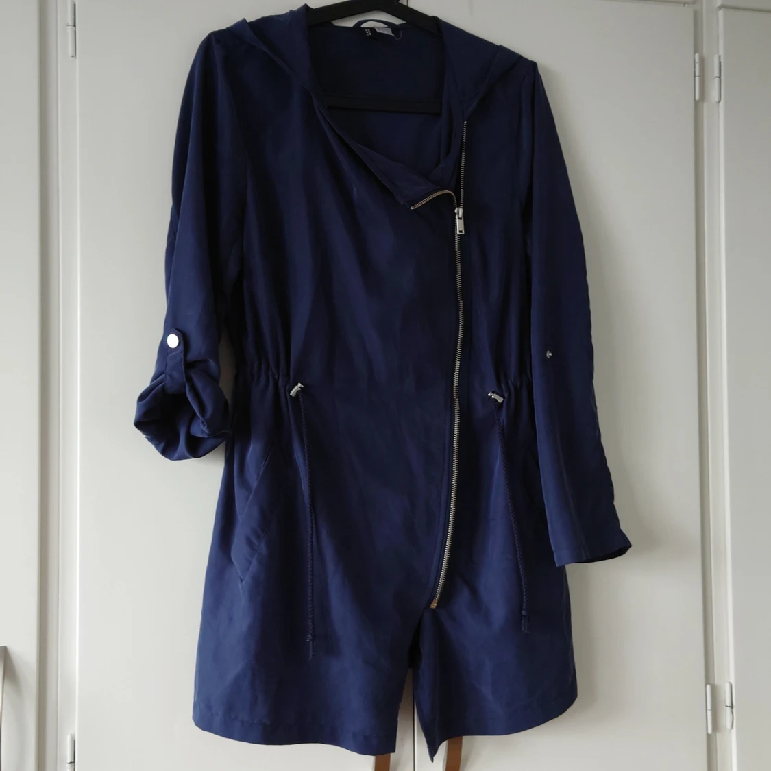 Tunn blå jacka, med dragsko i midjan. Sparsamt använd. Köparen står för frakt. (Kan skickas som brev då blir frakten billigare, men då är det ej spårbart)