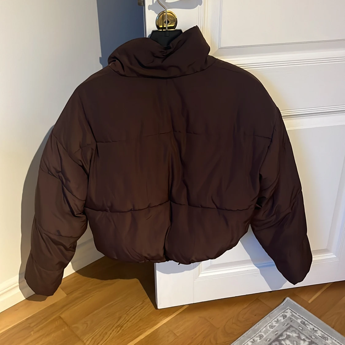 En brun/röd kort vinterjacka från hm. Storlek xs. Använts 2 säsonger. Lite slitage vid kragen, men inte så synbart.