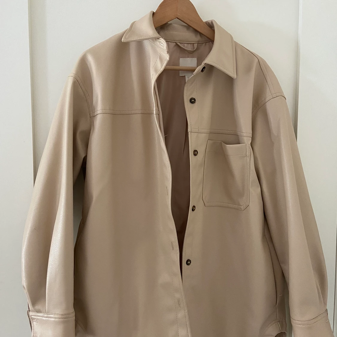 En snygg beige fakeläder jacka i storlek M. Använd 1 gång! Köparen står för frakt 📦