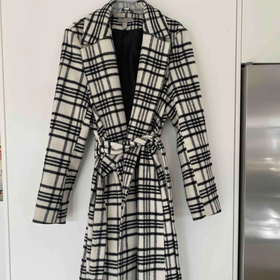 Svart vit rutig kappa från HM i storlek 38. Kappan är sparsamt använd, ca 5-6 gånger. Nypris 999kr. Fraktar gärna men köparen står för frakten:)