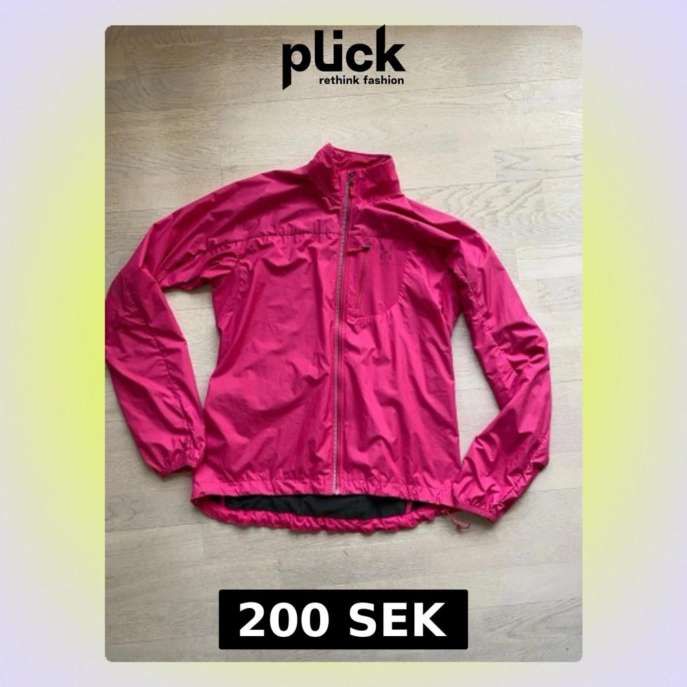 Säljer en snygg rosa vindjacka från Haglöfs med hel dragkedja framtill och hög krage. Jackan har en bröstficka med dragkedja, ficka i ryggslut. Elastisk över ryggen och tunt fodrad. Perfekt för utomhusaktiviteter.Storlek L