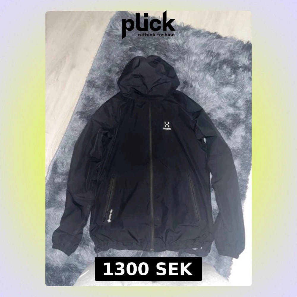 Svart vindjacka från Haglöfs med huva och hel dragkedja framtill. Jackan är tillverkad i slitstark Gore-Tex och har två sidofickor med dragkedja. Perfekt för blåsiga dagar och outdoor-aktiviteter. Stilren design med diskret logga på bröstet.