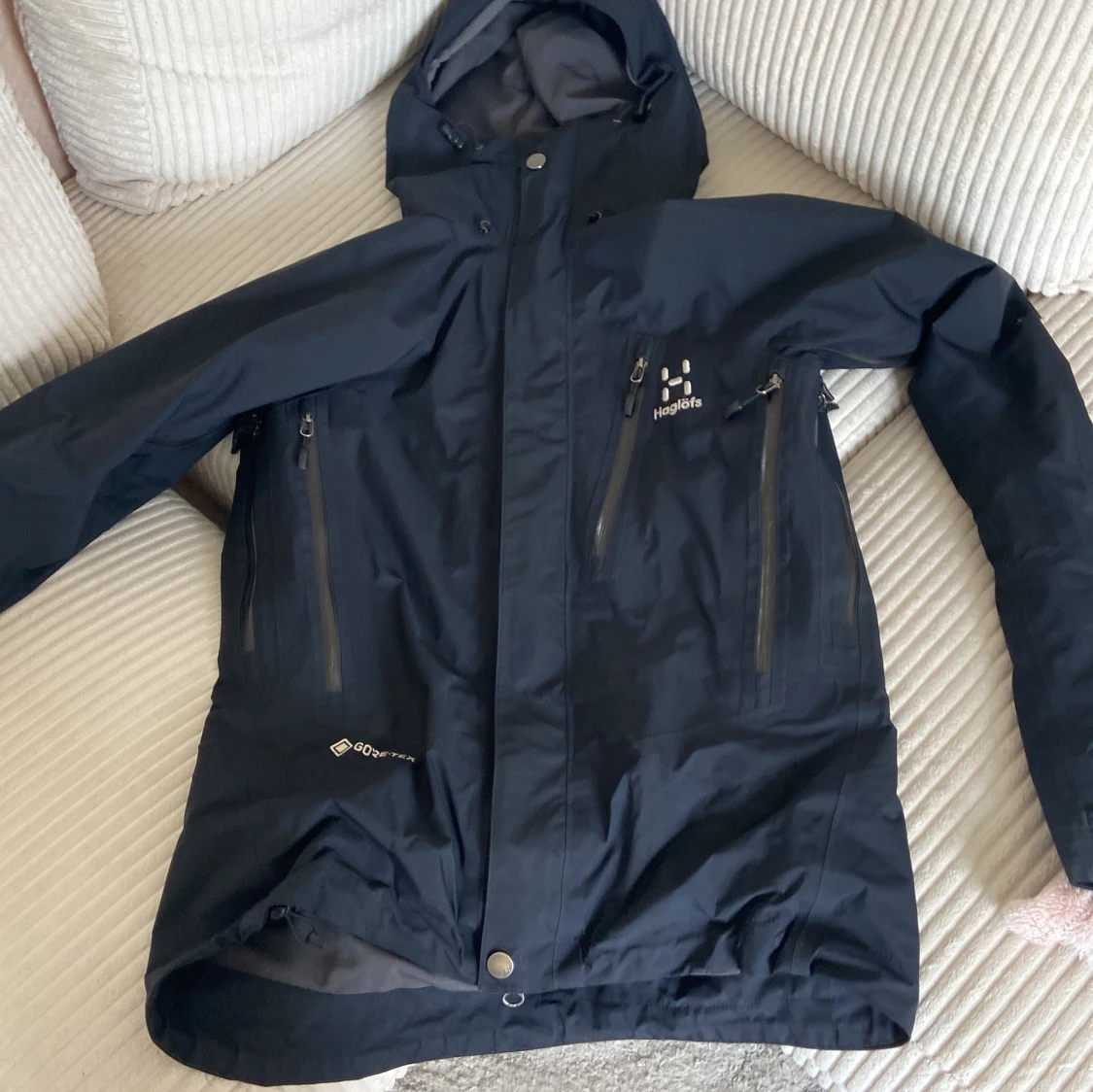 Svart skaljacka från Haglöfs i dammodell, storlek XS. Jackan har huva, två stora bröstfickor med dragkedja och är tillverkad i slitstarkt material med GORE-TEX. Perfekt för utomhusaktiviteter och äventyr.