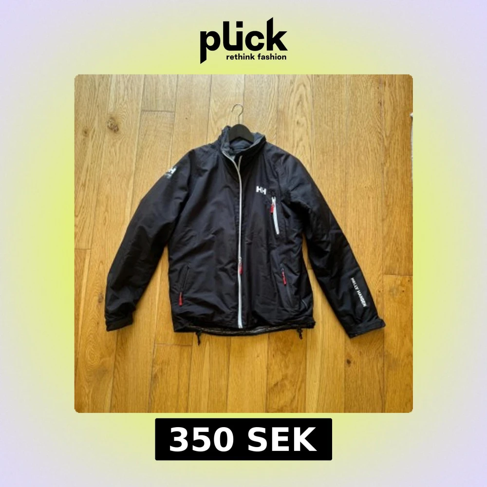 Svart vindjacka från Helly Hansen med vit dragkedja och röda detaljer på fickorna. Jackan har hög krage, tre fickor med dragkedja och justerbar nederkant. Perfekt för blåsiga dagar och snygg logga på bröstet och ärmen.