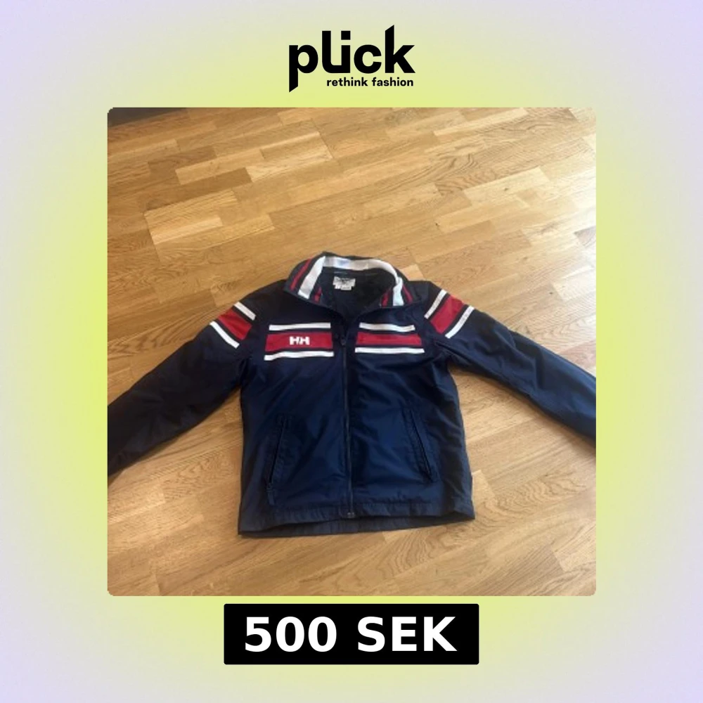 Snygg marinblå vindjacka från Helly Hansen med röda och vita ränder på bröstet och ärmarna. Jackan har dragkedja framtill, ståkrage och två fickor med dragkedja. Perfekt för dig som gillar sportig och stilren look.