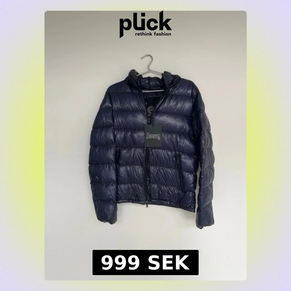 Navy blå dunjacka från herno i en väldigt populär glansig modell! Tags medföljer. Storlek S. Finns lagningar som syns på sista bilderna, syns knappt vid användning. Annars är skicket bra. Kontakta mig för fler frågor och funderingar!