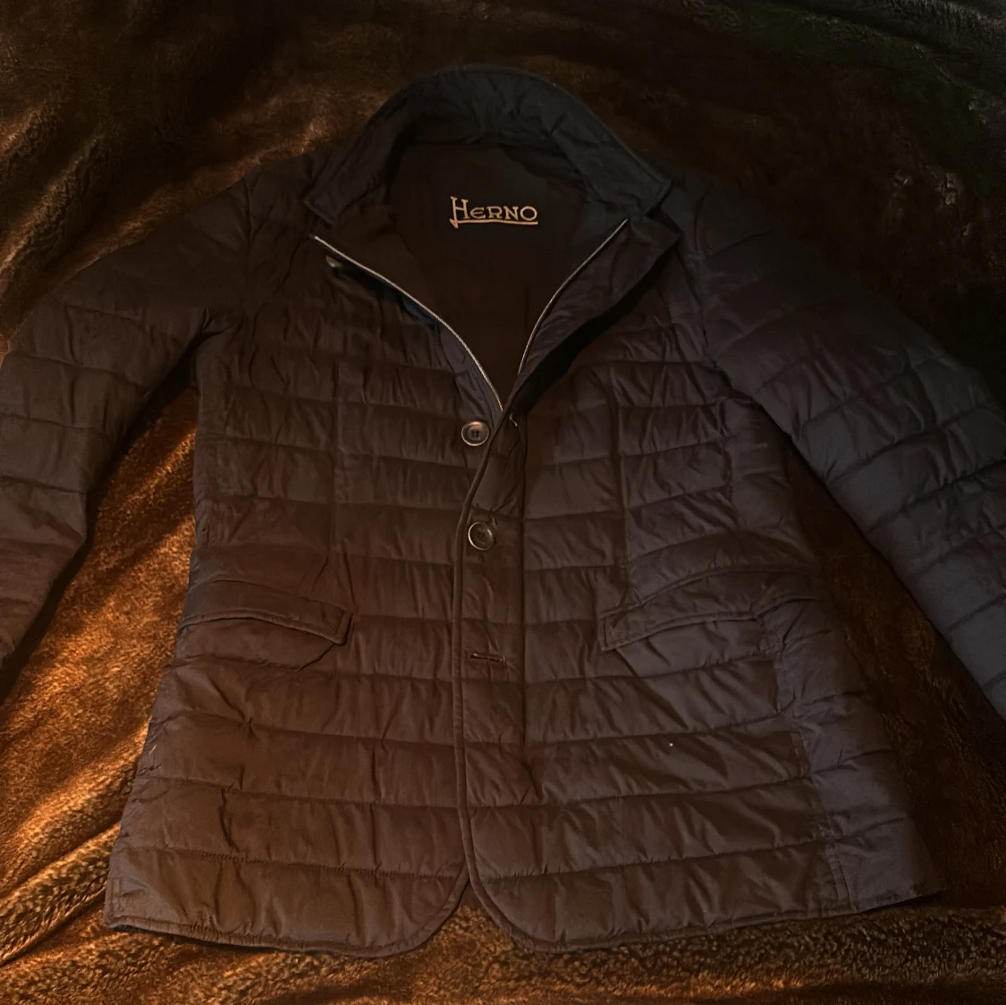 Snygg svart quiltad jacka från Herno med klassisk kavajkrage, knappar och dragkedja. Jackan har två fickor framtill och diskret logga på ärmen. Perfekt för dig som vill ha en stilren och varm look under höst