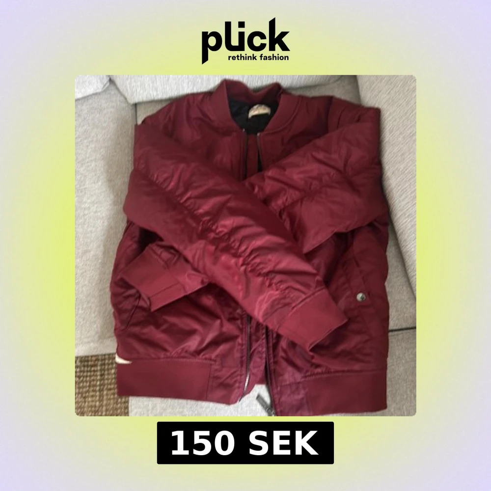 Säljer en vinröd bomberjacka från Crocker i storlek L. Jackan har dragkedja framtill, ribbade muddar och svart quiltat innerfoder. Klassisk modell med fickor på sidorna och en stilren look.