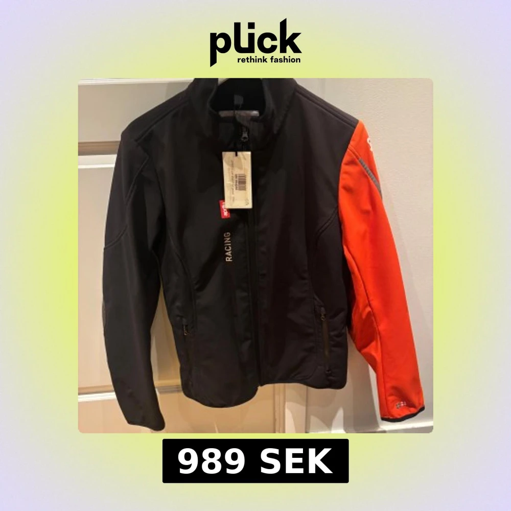 Snygg racingjacka från Aprilia i svart med en kontrasterande orange ärm. Jackan har dragkedja framtill och två praktiska fickor med dragkedjor. Perfekt för racingentusiaster som vill ha stil och funktionalitet.