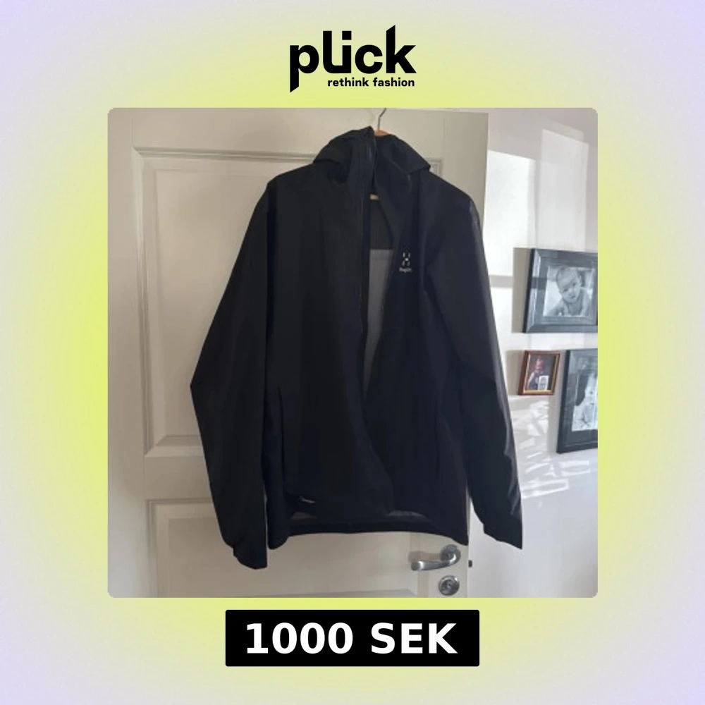Säljer en stilren svart vindjacka från Haglöfs. Jackan har en praktisk huva och dragkedja framtill. Perfekt för blåsiga dagar och tillverkad i ett lätt syntetmaterial. Passar bra för utomhusaktiviteter och har en enkel design.