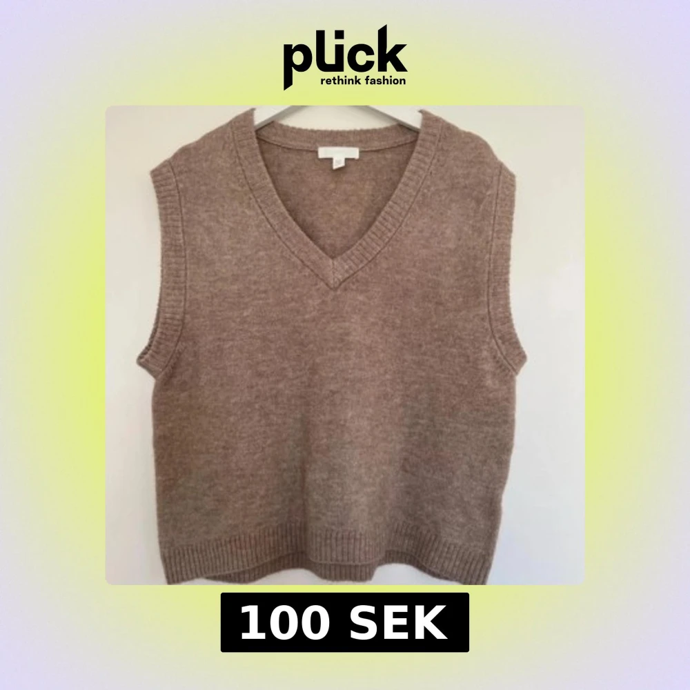 Mysig beige stickad väst med v-ringad hals och ribbade kanter. Perfekt att bära över en skjorta eller t-shirt för en avslappnad men stilren look.