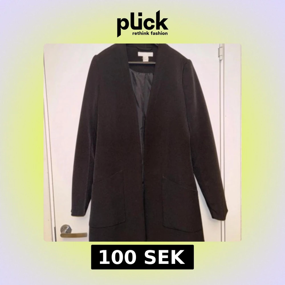 Jag tycker att det passar både S och M. Använd bara 2 gånget. Elegant svart kappa från H&M med en stilren design. Den har långa ärmar och två praktiska fickor framtill. Perfekt för kyligare dagar och ger en sofistikerad look.