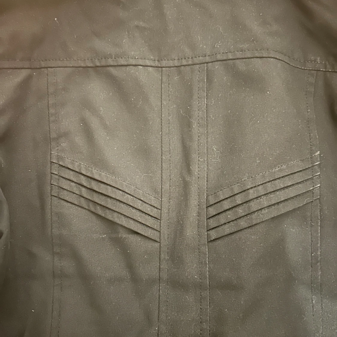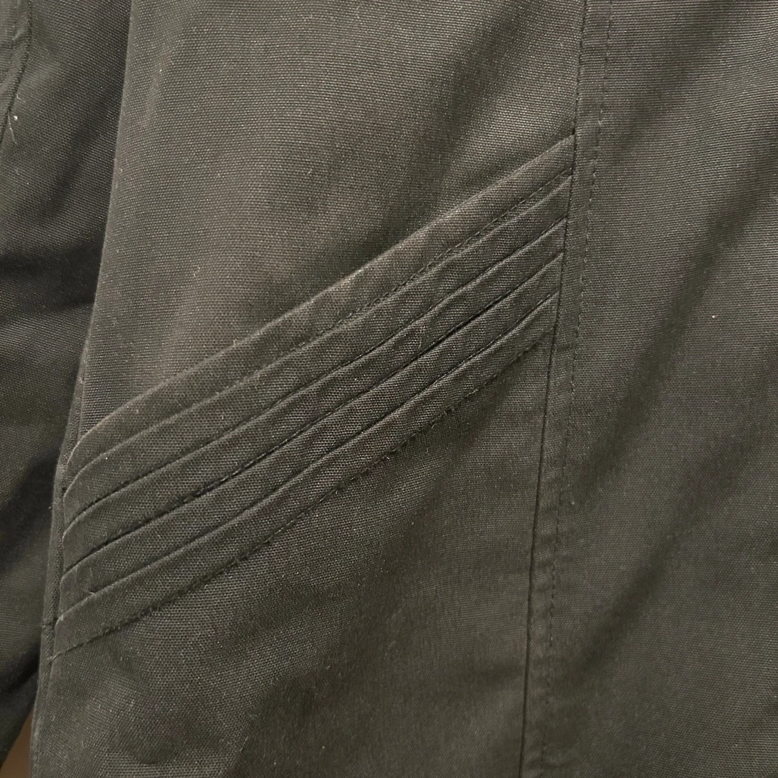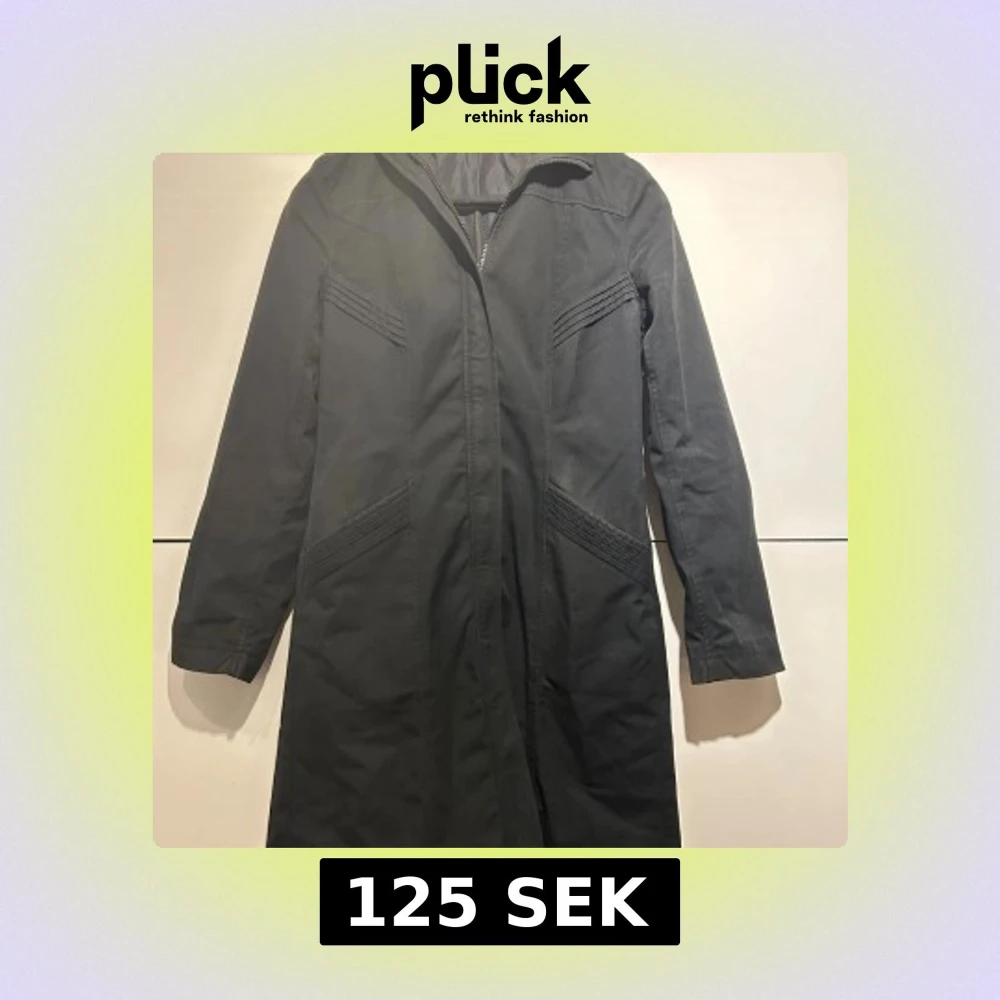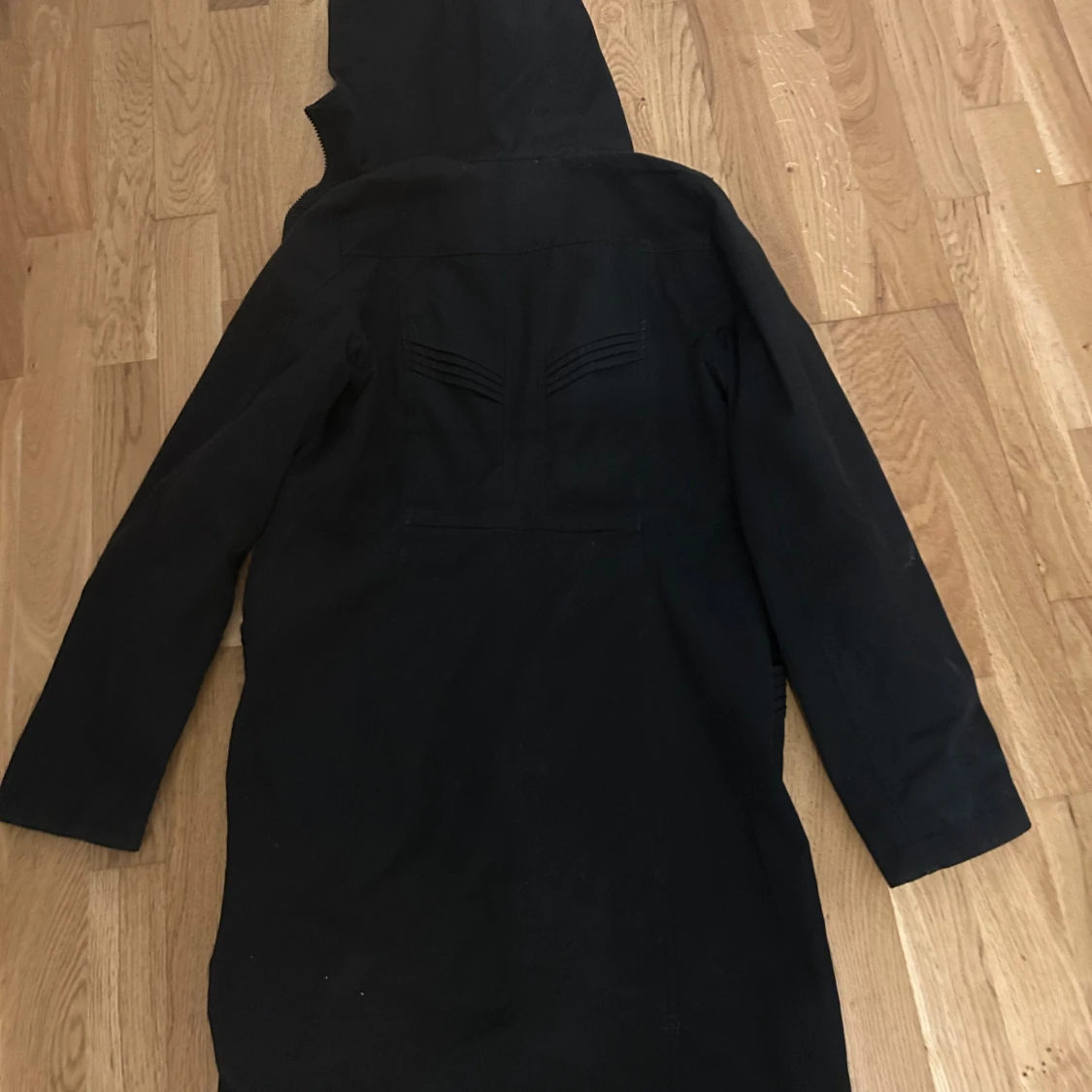 Svart kappa i längre modell med snygga ribbade detaljer på både fram- och baksidan. Jackan har dragkedja framtill och är helsvart med stilren look. Materialet känns som bomull och polyester, perfekt för dig som gillar minimalistisk stil.