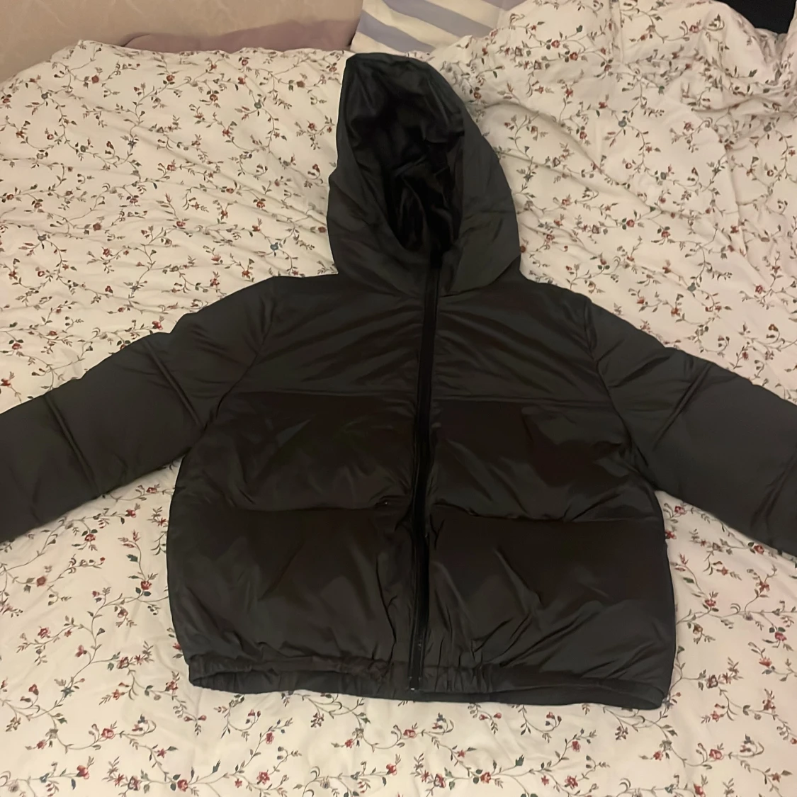 En varm vinterjacka jag använt under både höst och vinter förra året. Skön, ganska kort, bra fickor (sista bilden). Priset är sänkt då den har ett litet hål på vänster axel.