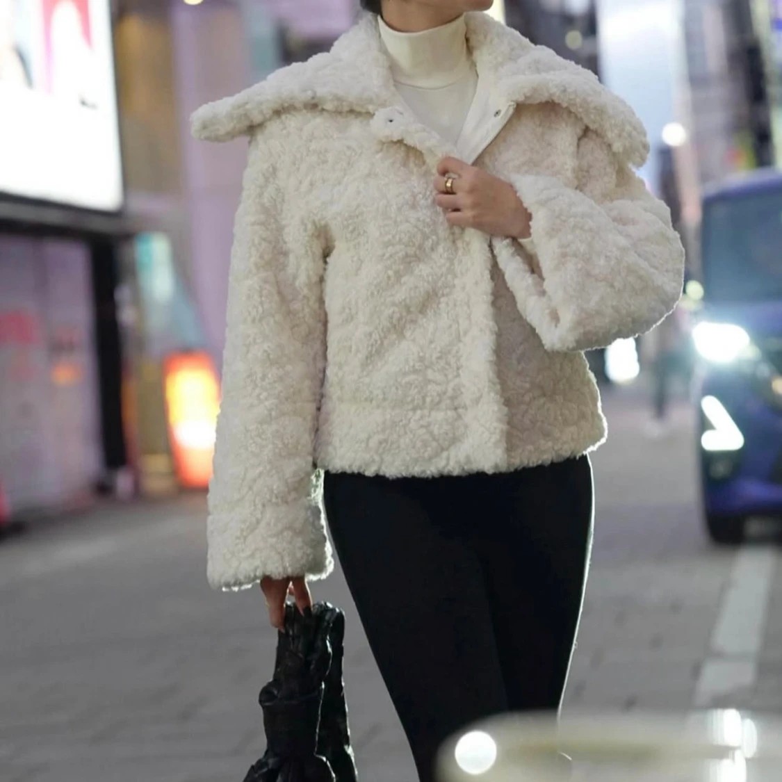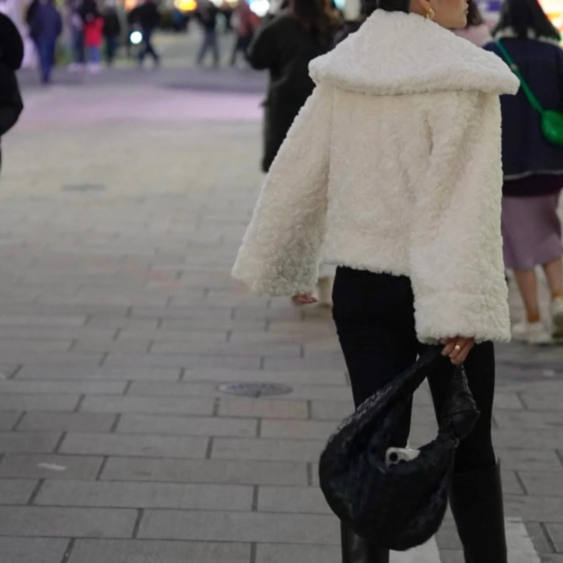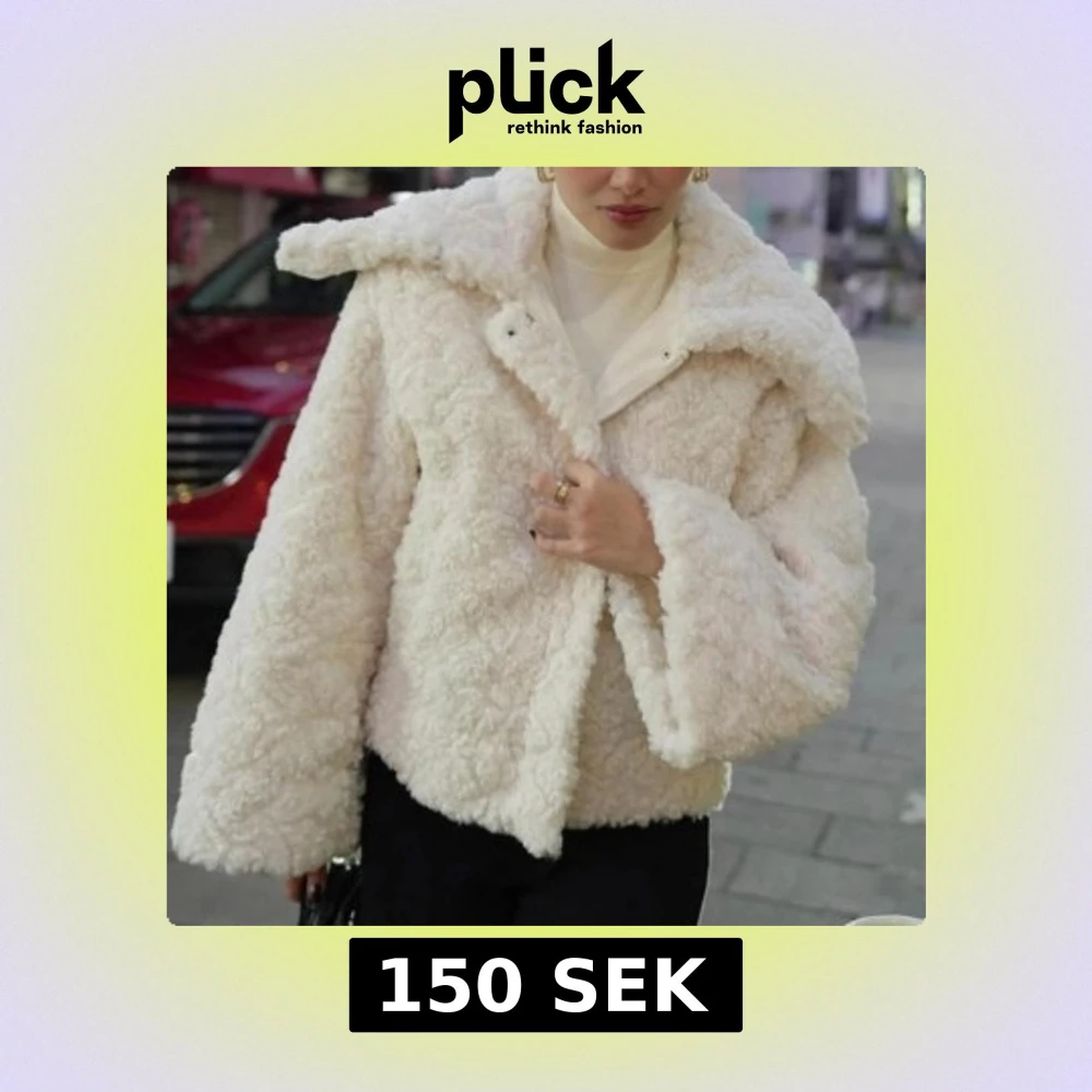 Säljer en fluffig vit teddyjacka med bred krage och långa ärmar. Jackan har en loose passform och är tillverkad i mjukt teddy-material som ger en cool och mysig vibe. Perfekt för dig som gillar statement-plagg och vill hålla dig varm under höst och vinter.