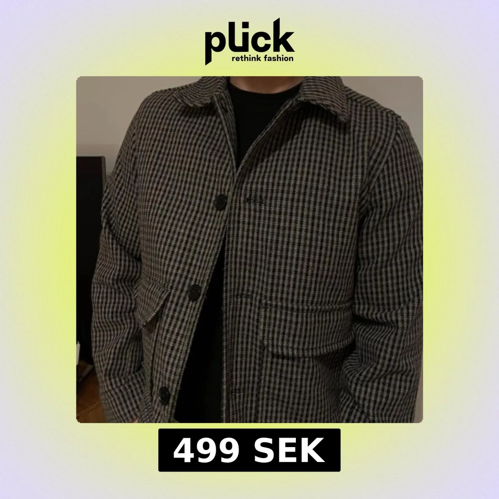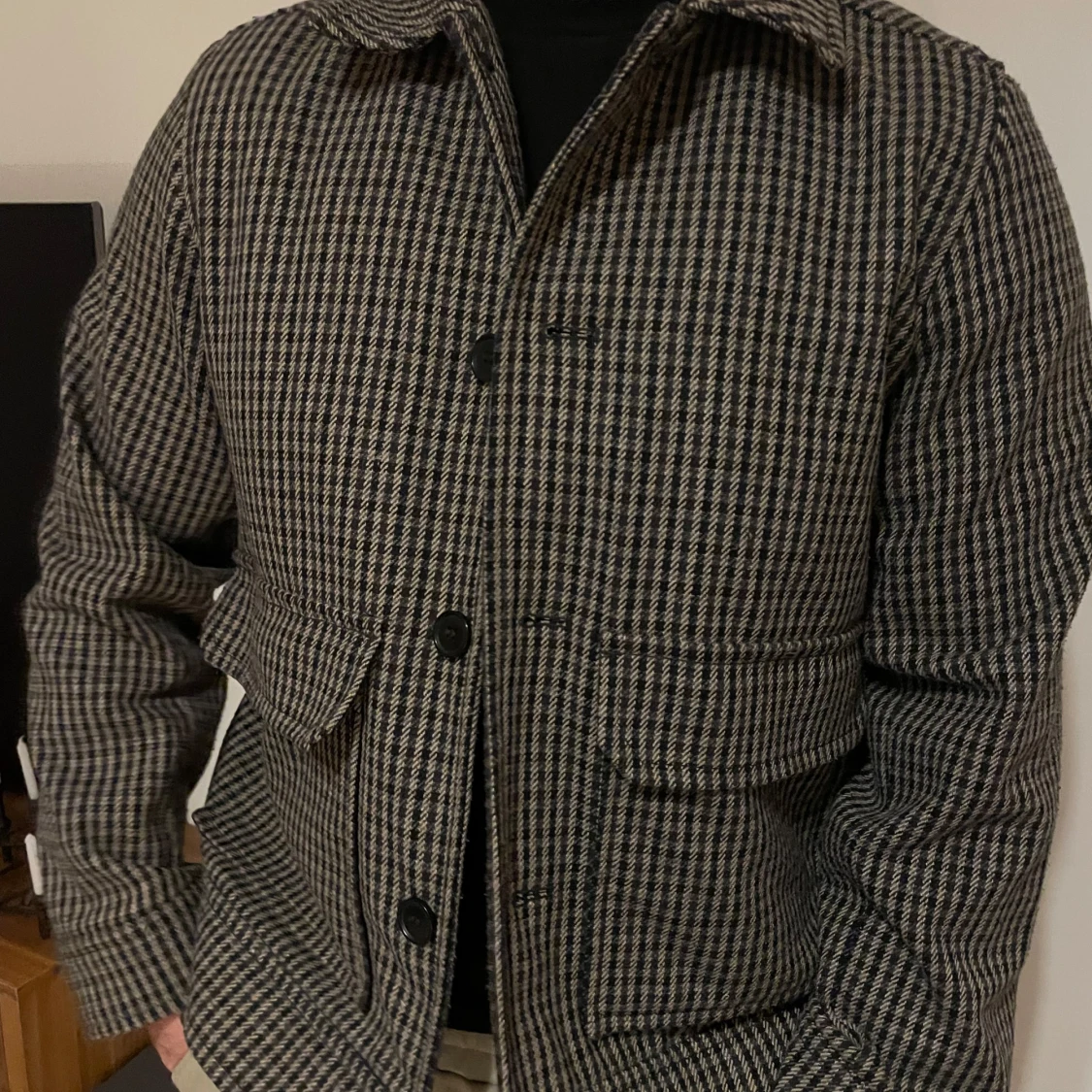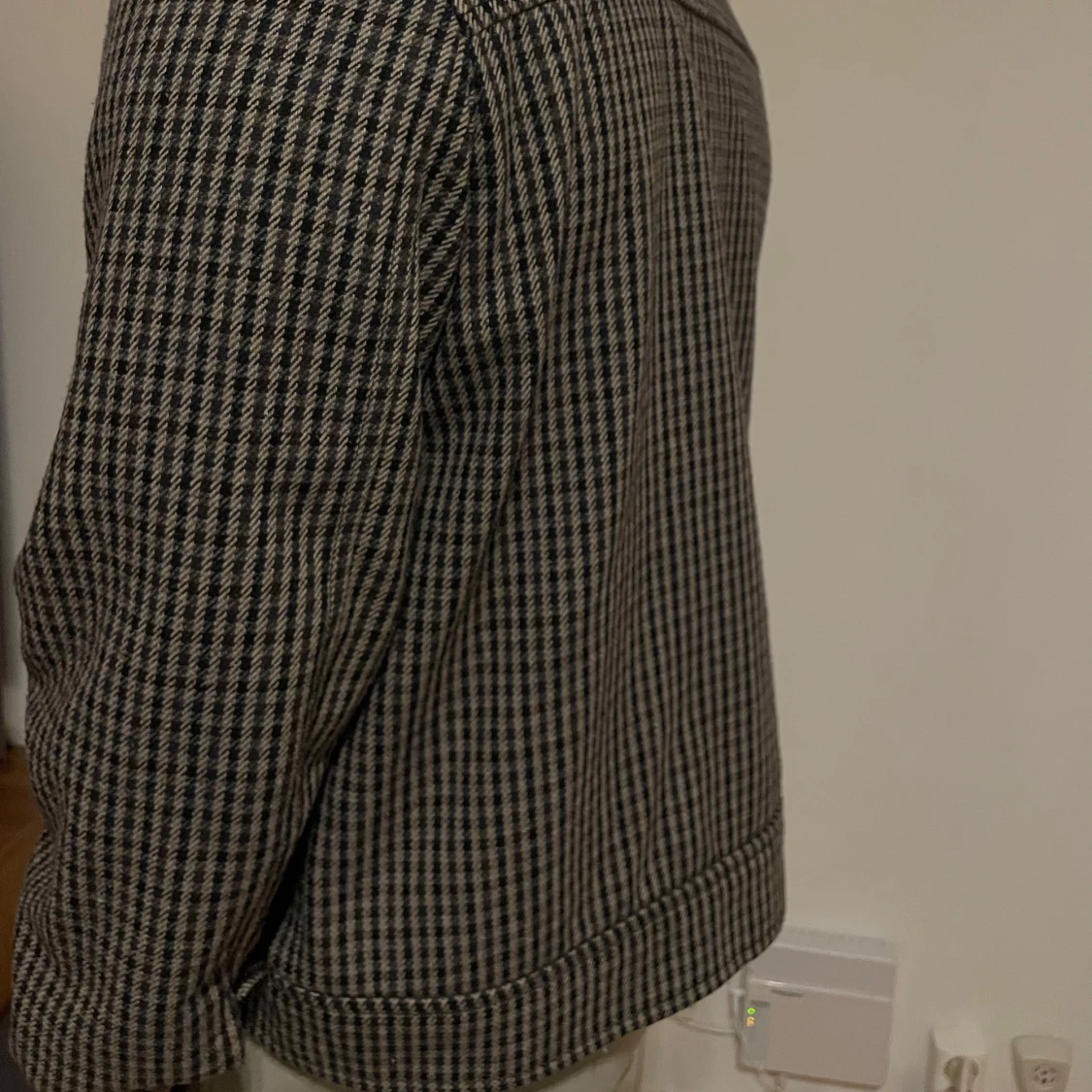 Säljer en stilren rutig jacka från H&M i svart och beige. Jackan har knappar framtill och en klassisk krage. Perfekt för våren med sin tidlösa design och bekväma passform.