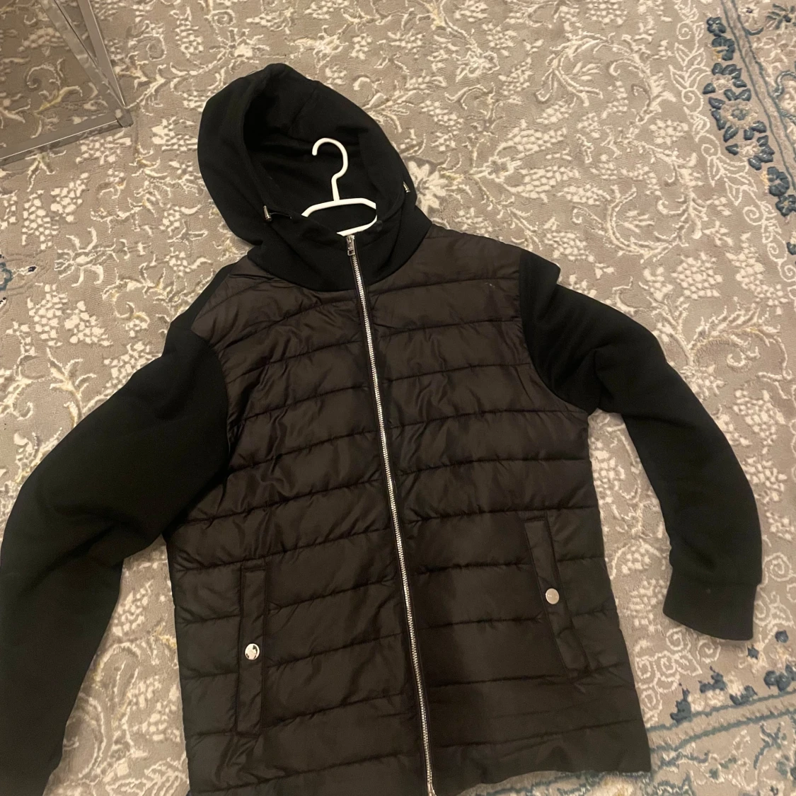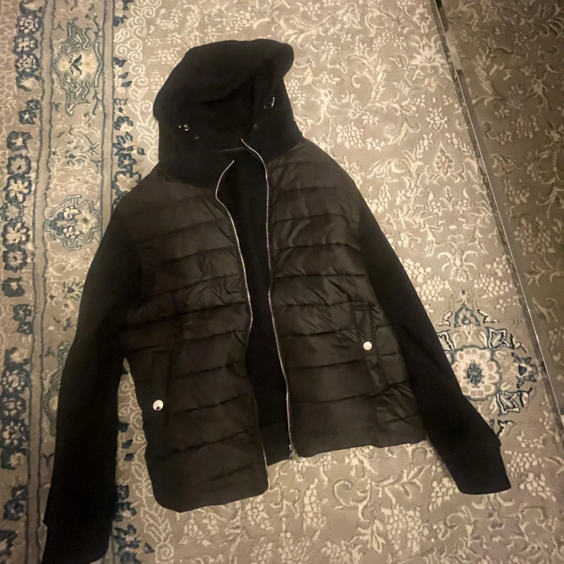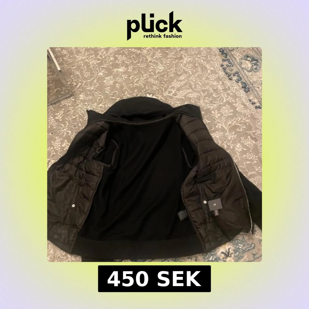 Svart pufferjacka från H&M med quiltad framsida och mjuka ärmar. Jackan har huva med snörning, två fickor med tryckknappar och dragkedja framtill. Perfekt för dig som gillar en clean och chill stil. Passar dig som vill ha en jacka med lite extra edge.