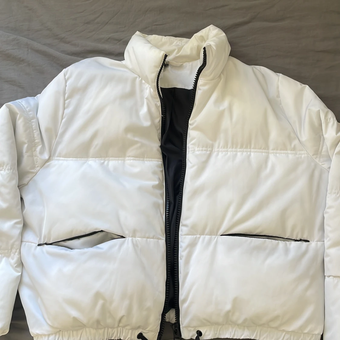Säljer en stilren vit pufferjacka från H&M. Jackan har en dragkedja framtill och två sidofickor. Perfekt för kyliga dagar med sin vadderade design. Enkel och snygg att matcha med olika outfits.