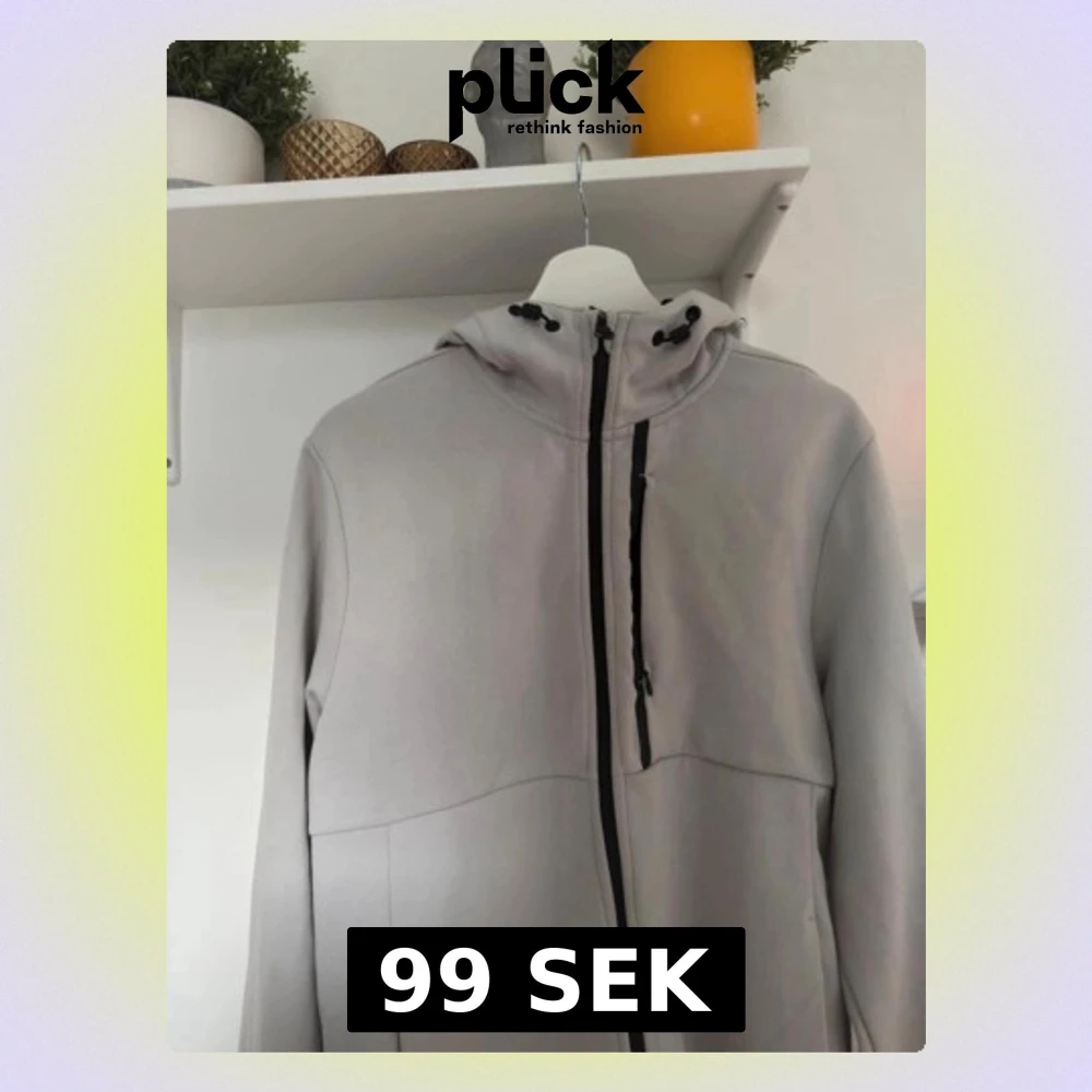 Säljer en ljusgrå vindjacka med huva och svarta dragkedjor. Jackan har justerbar snörning vid huvan och en clean, minimalistisk look. Perfekt för dig som gillar stilrena plagg med funktionella detaljer. Passar dig som vill ha en jacka med sportig vibe.