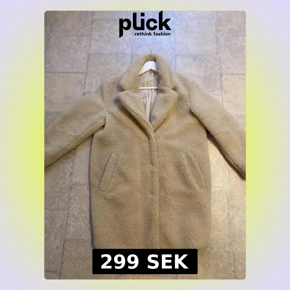 Säljer en beige teddyjacka med klassisk krage och två snedställda fickor framtill. Jackan är gjord i mjukt teddy-material och har en rak passform som ger en chill vibe. Perfekt för kalla dagar när du vill vara både varm och snygg.