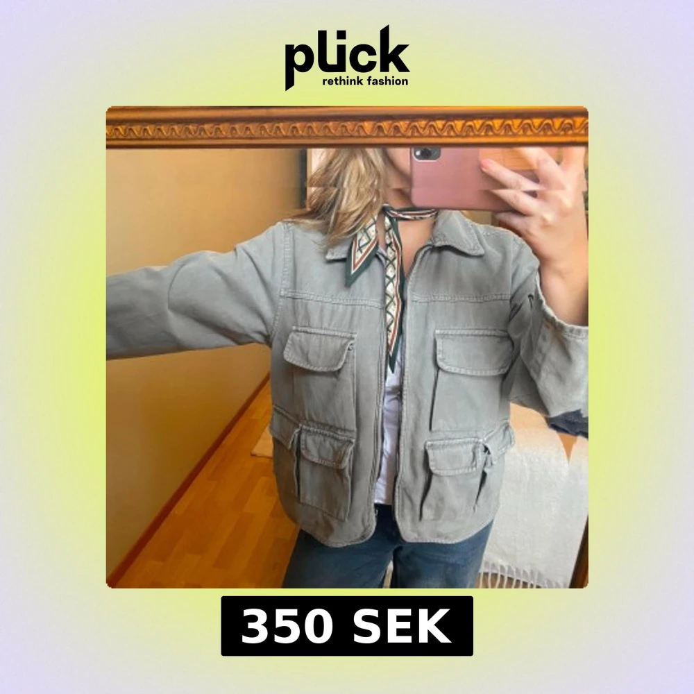 Säljer en grön cargo jacka från H&M med fyra stora fickor framtill och en cool utility-vibe. Jackan har dragkedja, klassisk krage och är tillverkad i bomull. Perfekt att slänga över en t-shirt för en chill look. Säljer då den inte kommer till användning längre