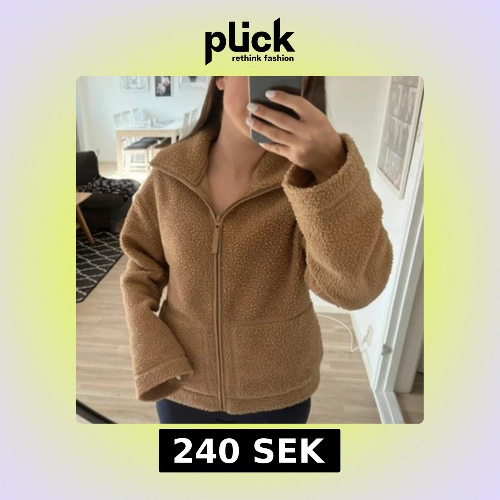 Mysig beige teddyjacka med dragkedja framtill och hög krage. Passformen är normal och materialet är mjukt och fluffigt.