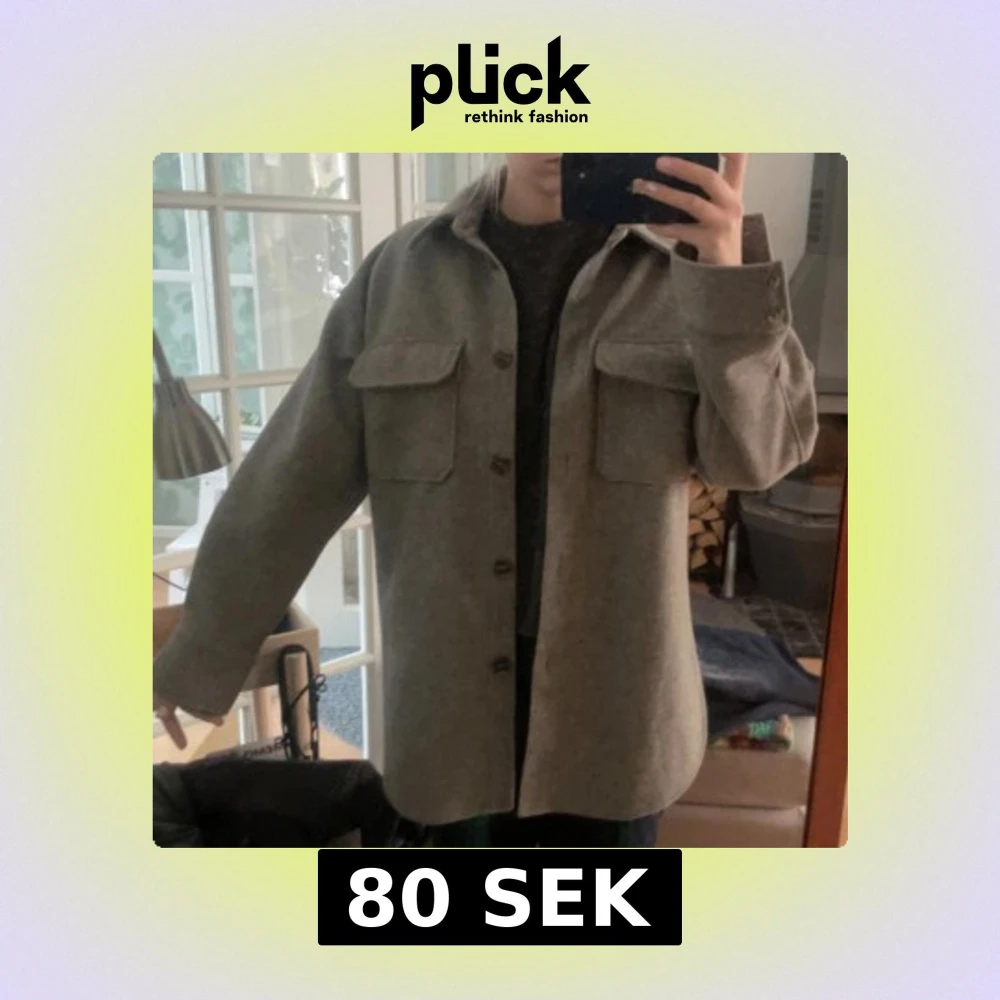 Säljer en stilren grå overshirt med knappar framtill och två stora bröstfickor. Perfekt för lager-på-lager-stil och passar bra till både vardag och mer avslappnade tillfällen.