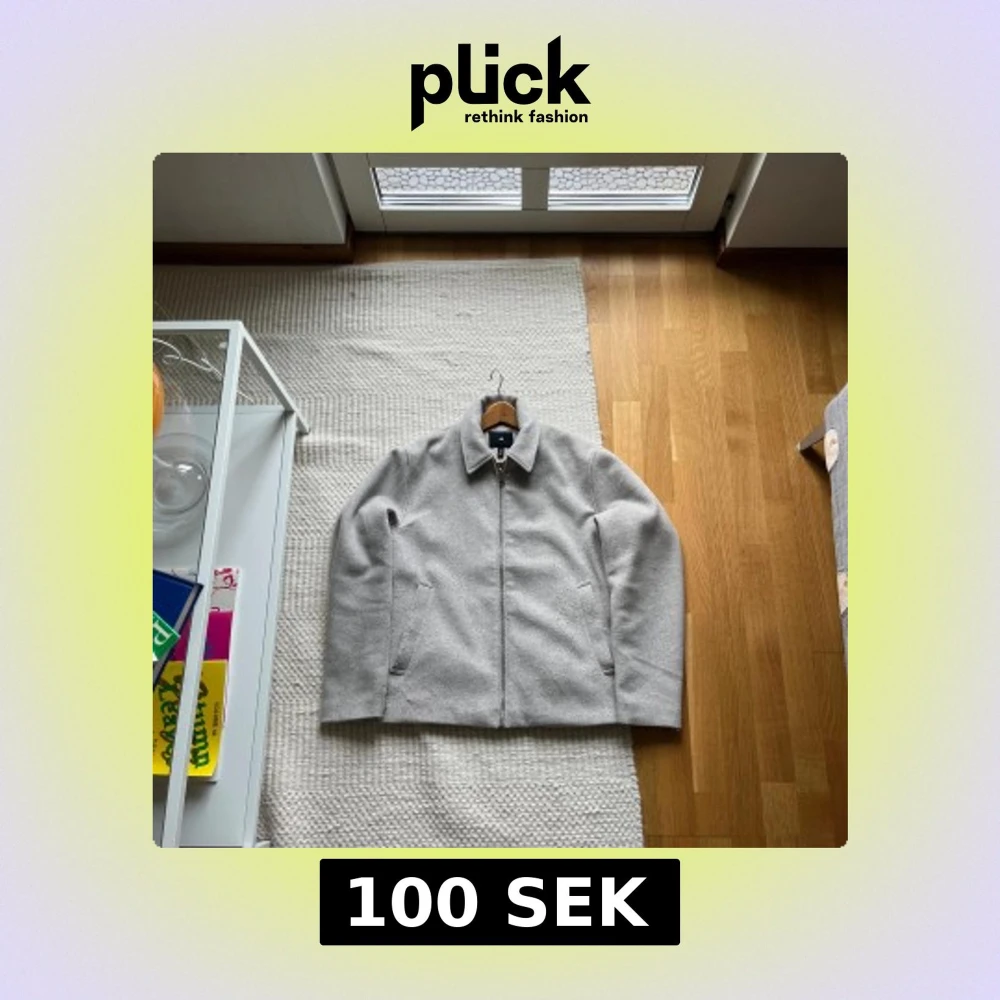 Säljer en stilren ljusgrå jacka från H&M i ullblandning. Jackan har klassisk krage, dragkedja framtill och två snedställda fickor. Perfekt för dig som gillar enkel och clean stil. Passar till många olika outfits.