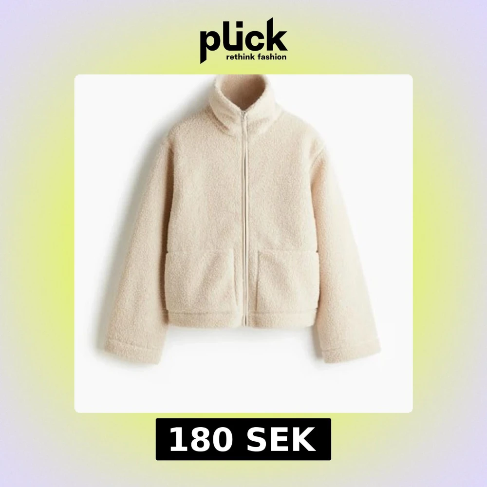 Mysig beige teddyjacka med hög krage och två stora fickor framtill. Jackan har en rak och lite loose passform, långärmade ärmar och stängs med dragkedja. Perfekt för kalla dagar när du vill vara både varm och stilren.