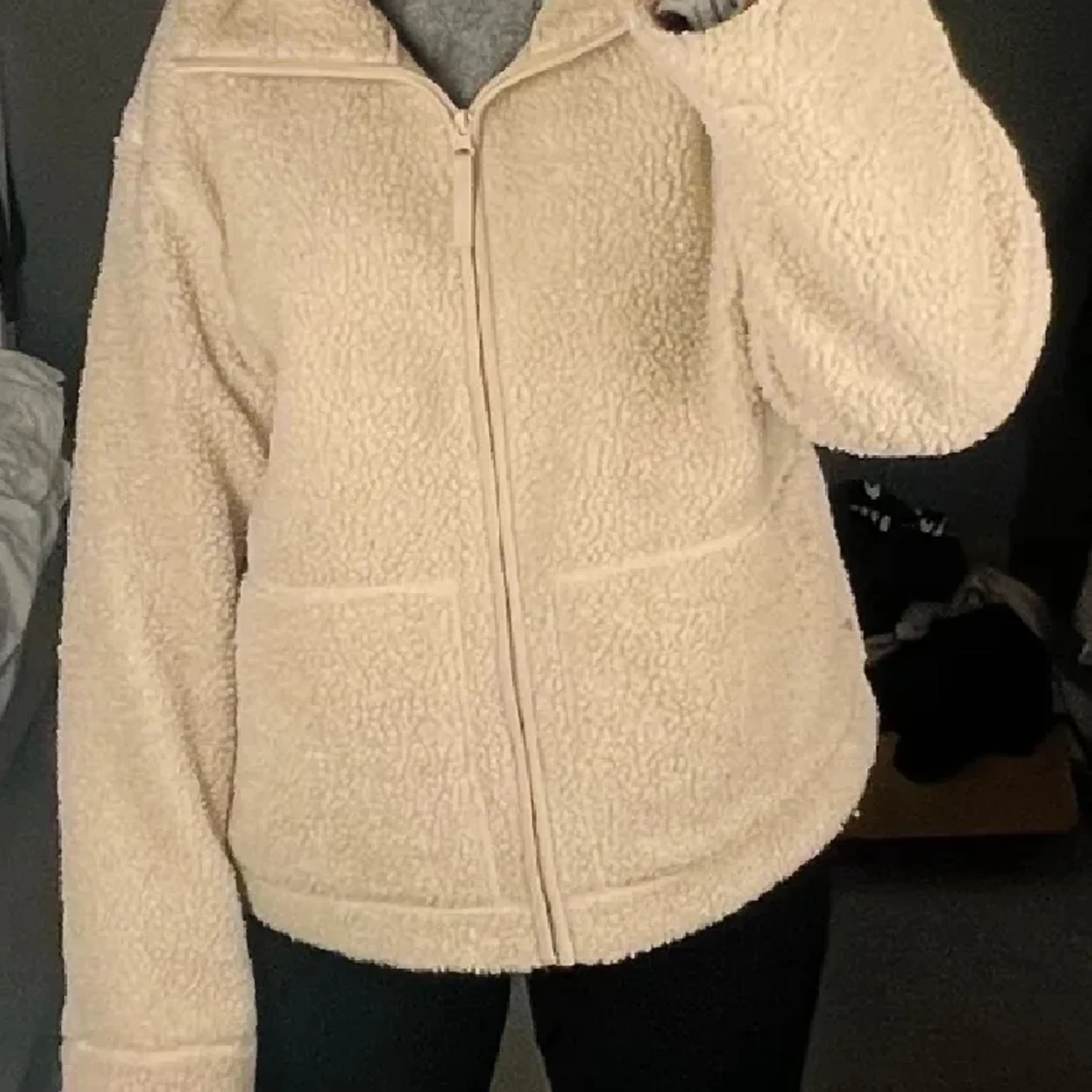 Teddyjcaka från hm. Passar till allt och är super mysig 💞💞storlek m
