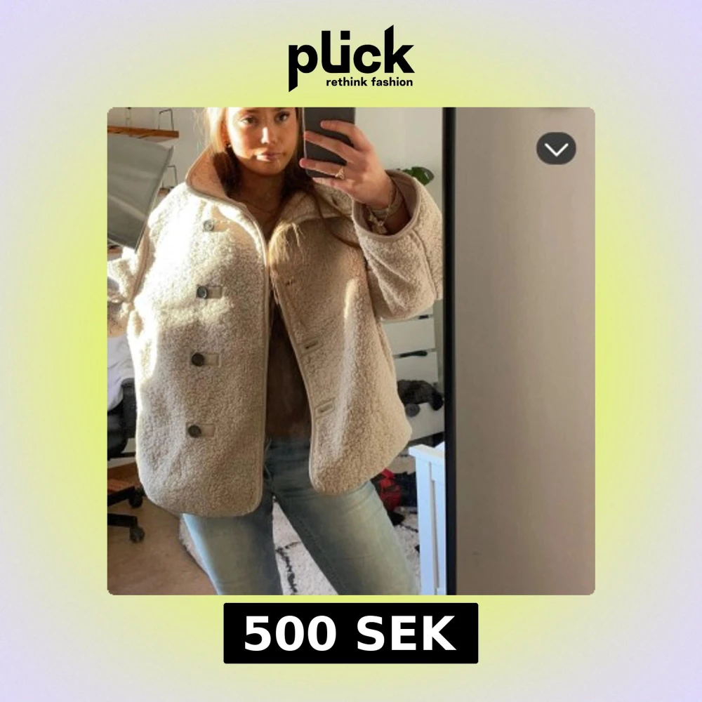 Supermysig beige teddyjacka med oversized passform och stora svarta knappar framtill. Jackan har hög krage och är tillverkad i fluffigt teddy-material som håller dig varm. Perfekt för kalla dagar och enkel att styla med jeans eller hoodies.