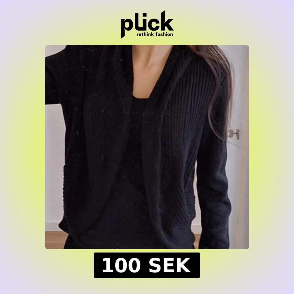 Säljer en svart kofta med ribbade partier längs sidorna och kragen. Koftan har aldrig använts och är i storlek S