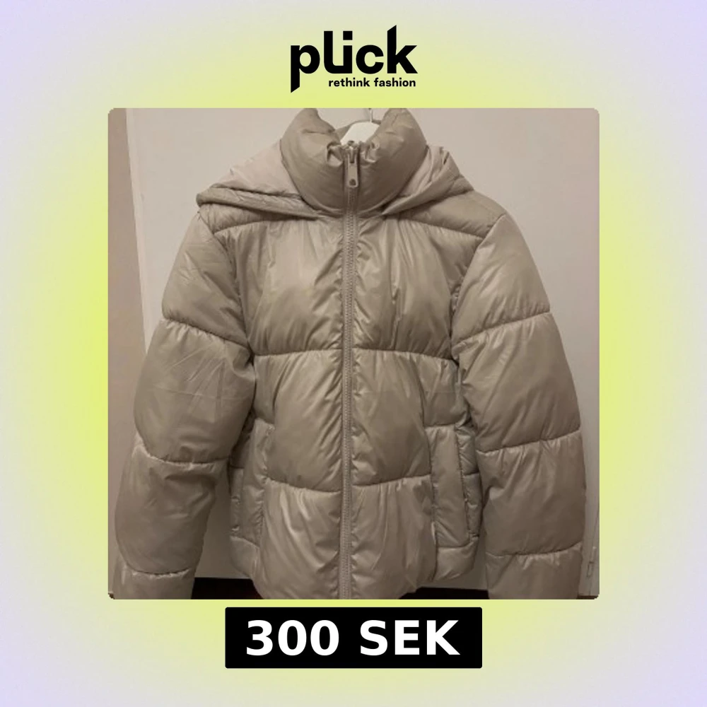 Snygg beige pufferjacka från H&M med hög krage och dragkedja framtill. Jackan är vadderad och har en oversized känsla, inga slitningar. Varm, funkar bra till vintern!