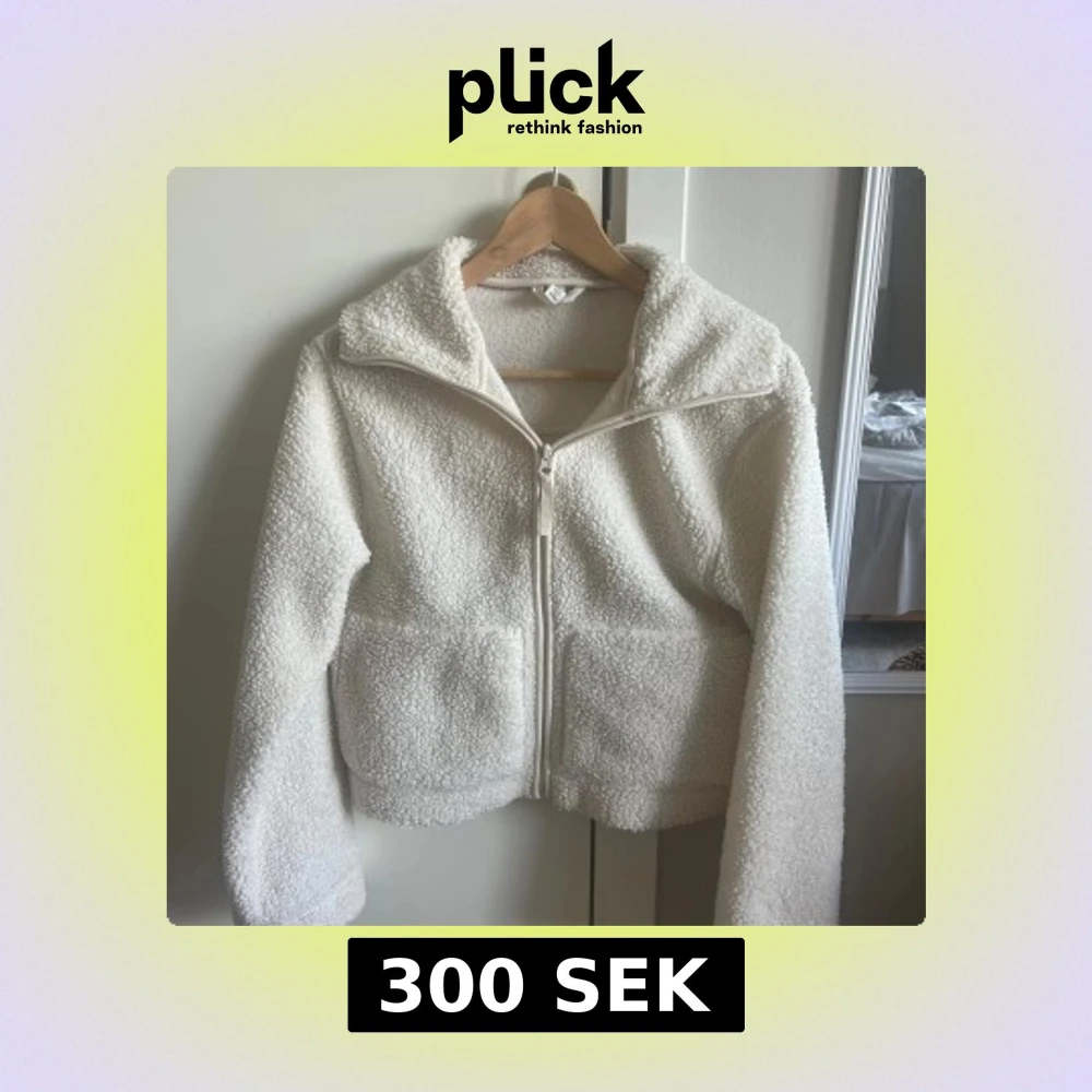 Vit teddyjacka med dragkedja - Superfin och fluffig teddyjacka med dragkedja framtill och hög krage. Jackan har långa ärmar och två stora fickor fram. Perfekt för våren! Teddyjackan köptes från H&M