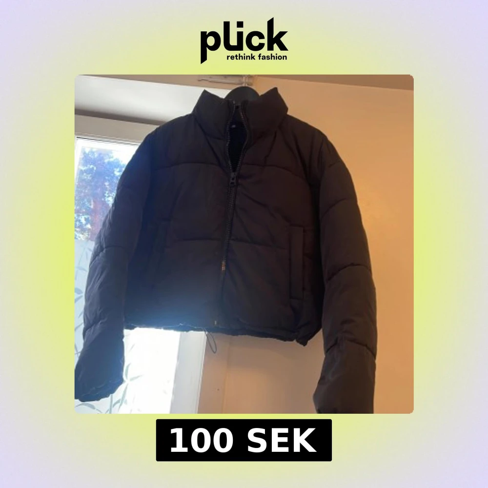 Svart pufferjacka med croppad passform och hög krage. Jackan har en rejäl dragkedja framtill och två sidofickor. Perfekt för kalla dagar när du vill ha en stilren och trendig look.