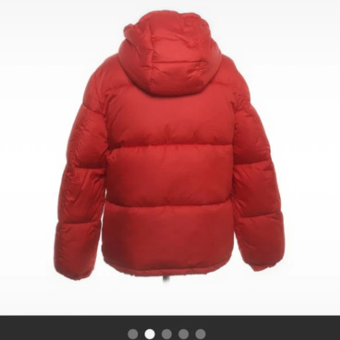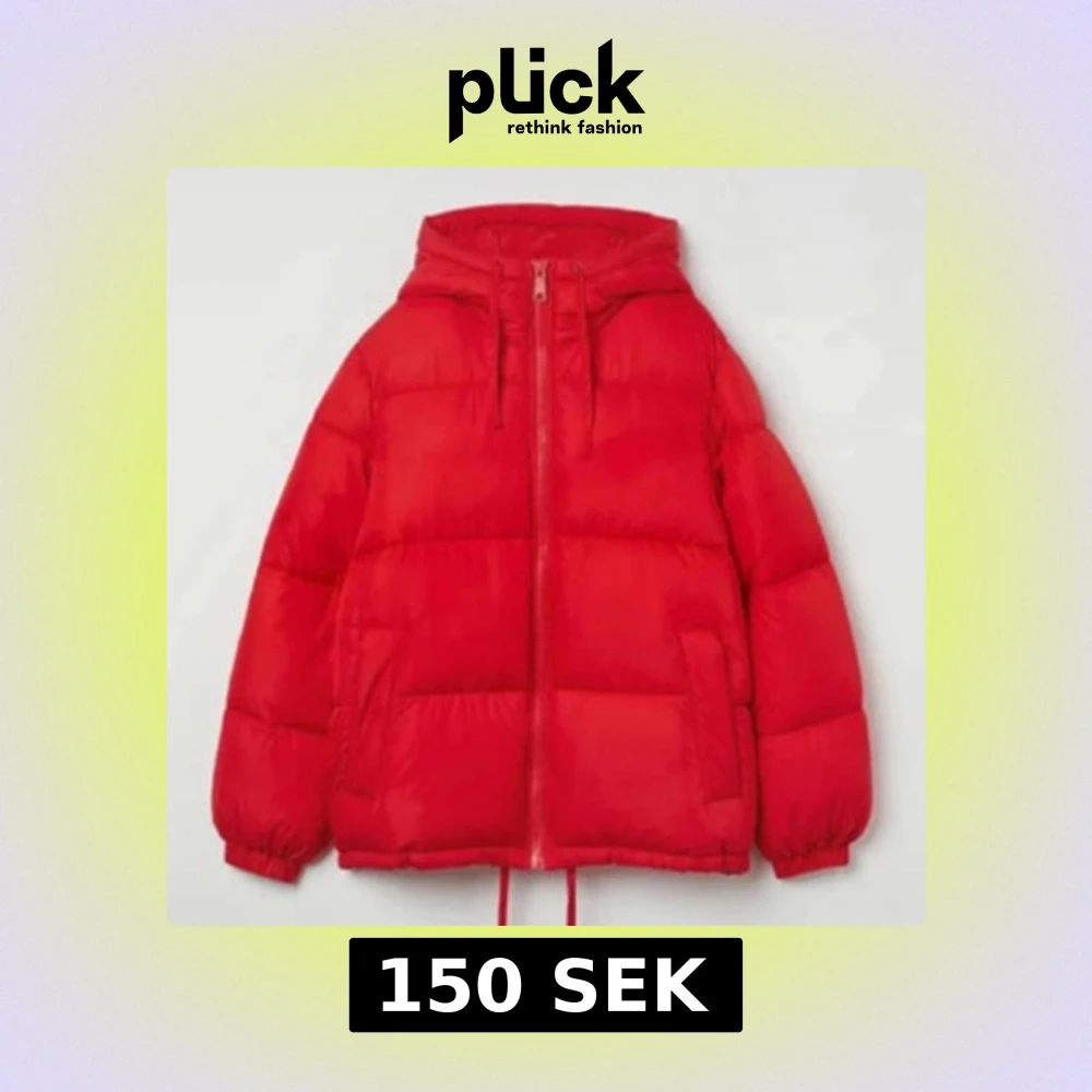 Röd dunjacka med huva