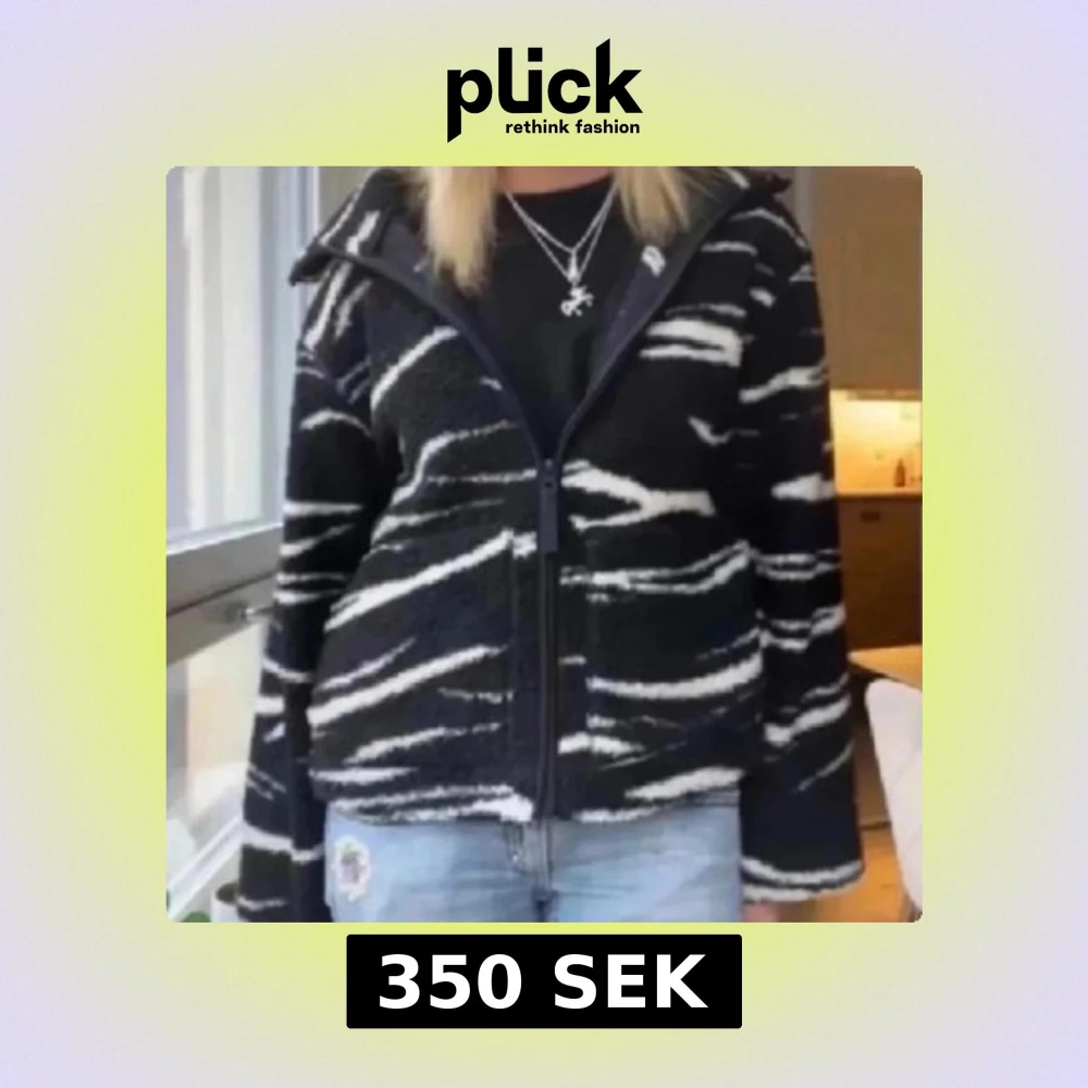 Säljer en svart teddyjacka med vita zebraränder. Jackan har dragkedja framtill, hög krage och är långärmad. Den är fluffig och riktigt skön, perfekt för kyliga dagar. Passformen är normal och materialet känns mjukt och mysigt. BUDA!!!!