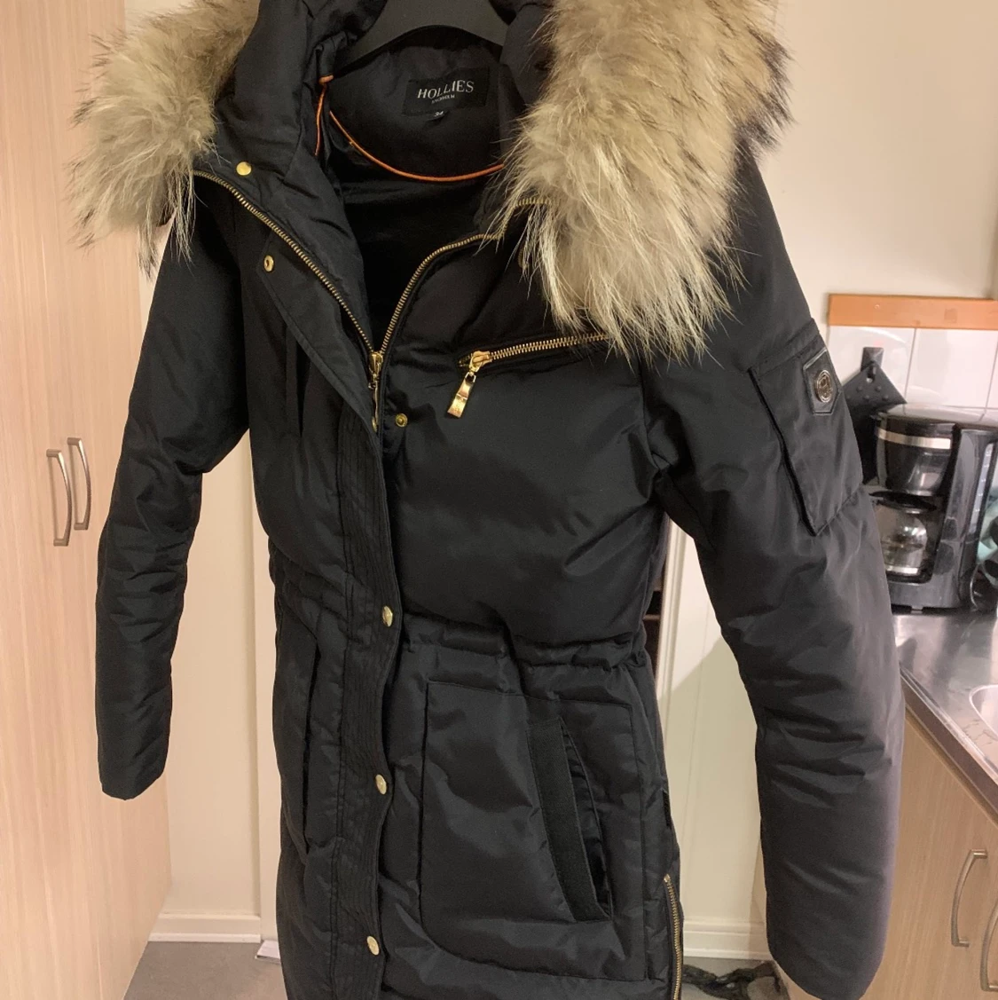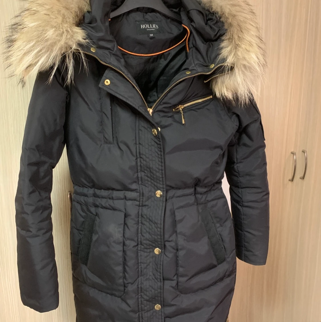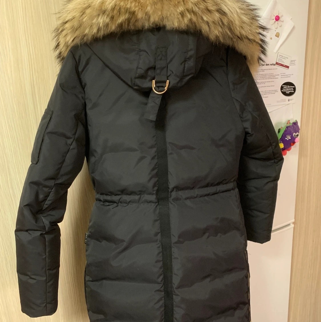 Använd Max 5 gånger, väldigt fint skick. Köpt föra året, den sitter ganska tajt med kroppen men det är en sådan modell den är ganska lång, jag är 165cm och den slutar lite ovanför knäna. Den är väldigt varm och mysig.