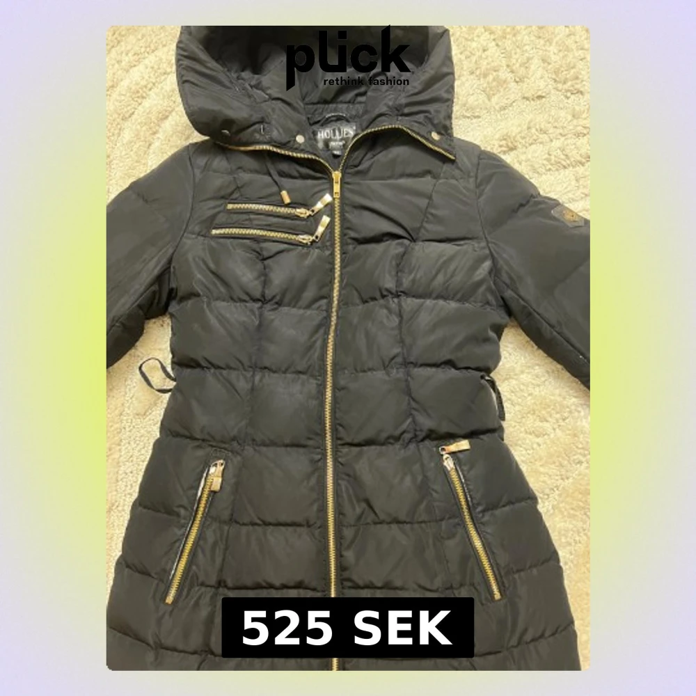 🧥 Stilren och varm vinterjacka från Hollies Stockholm ✨ Svart yttertyg med snygga gulddetaljer och dragkedjor 🐆 Trendigt leopardmönstrat innerfoder som ger det lilla extra 📏 Storlek: 34 👍 Bra skick, hel och fräsch ❄️ Perfekt för kalla dagar – både vardag och fest Redo att användas direkt! 😊