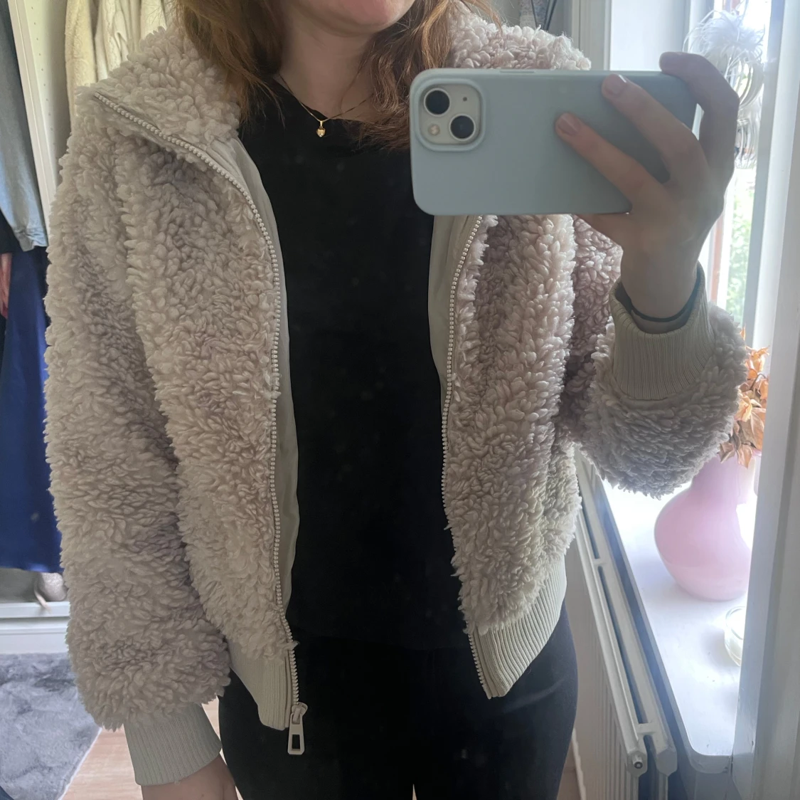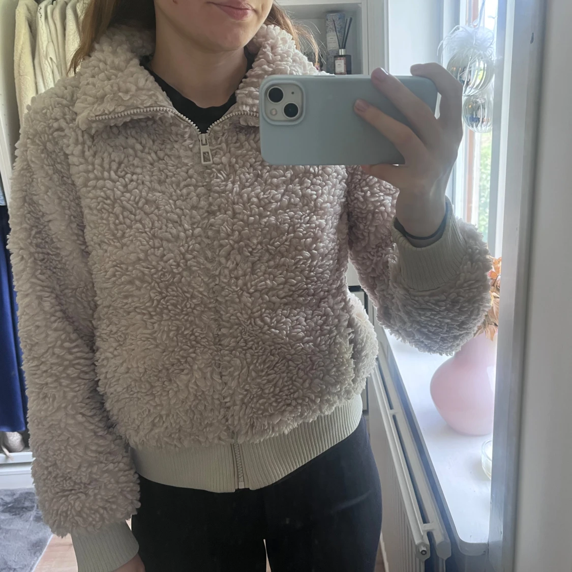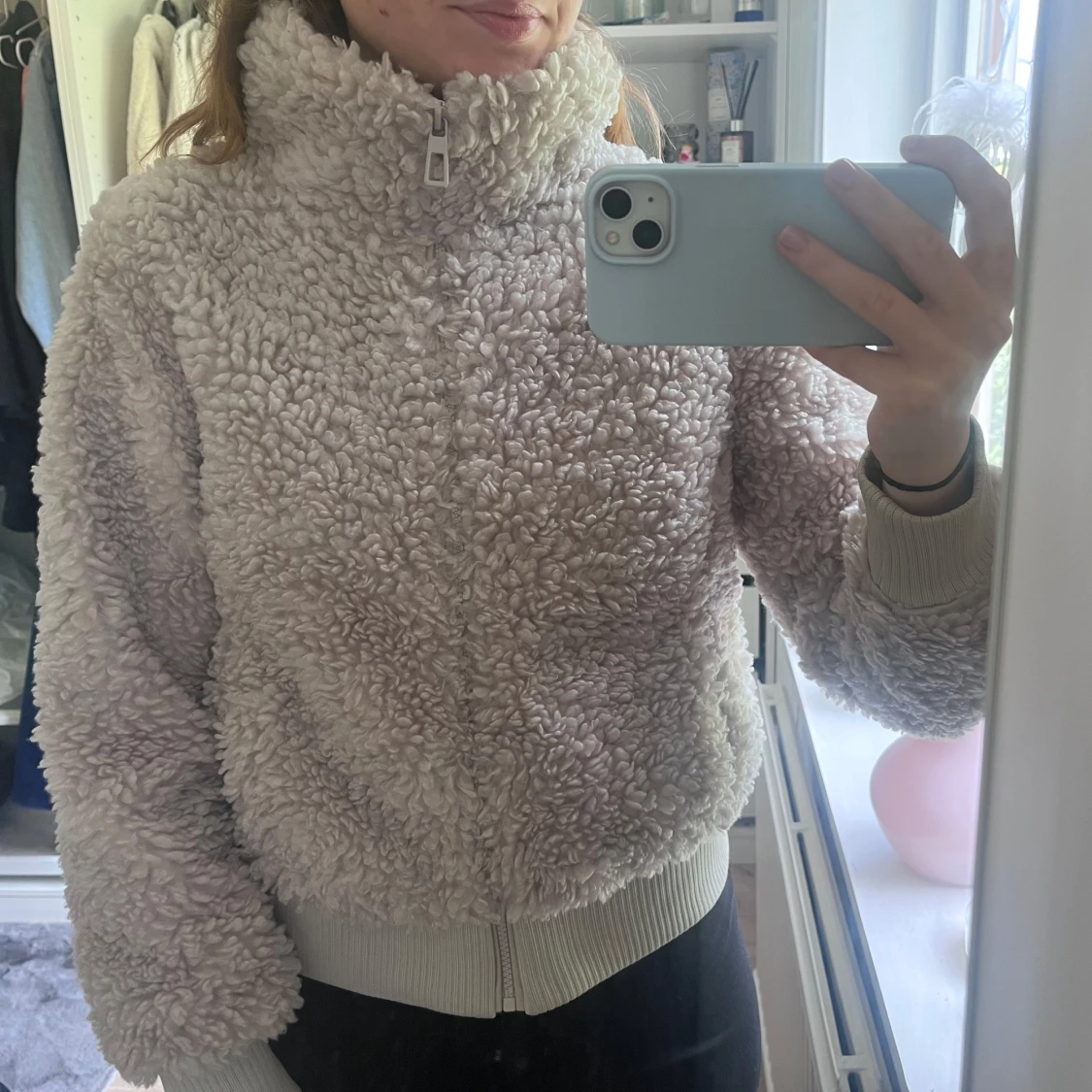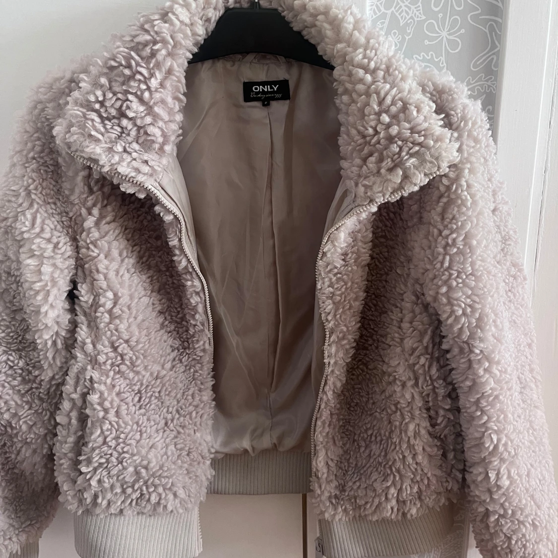 Varm och skön teddyjacka med hög krage och dragkedja från ONLY. Använd några få gånger, men syns inte alls. Säljer pga den är för liten för mig, i storlek S! 🫶🏼