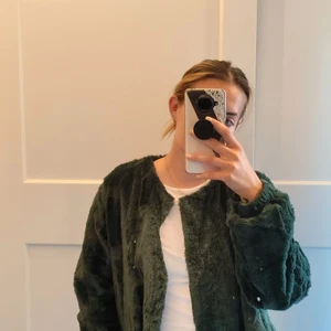 Grön fuskpälsjacka, knappt använd. Från Kappahl storlek L, passar även mig som är S.