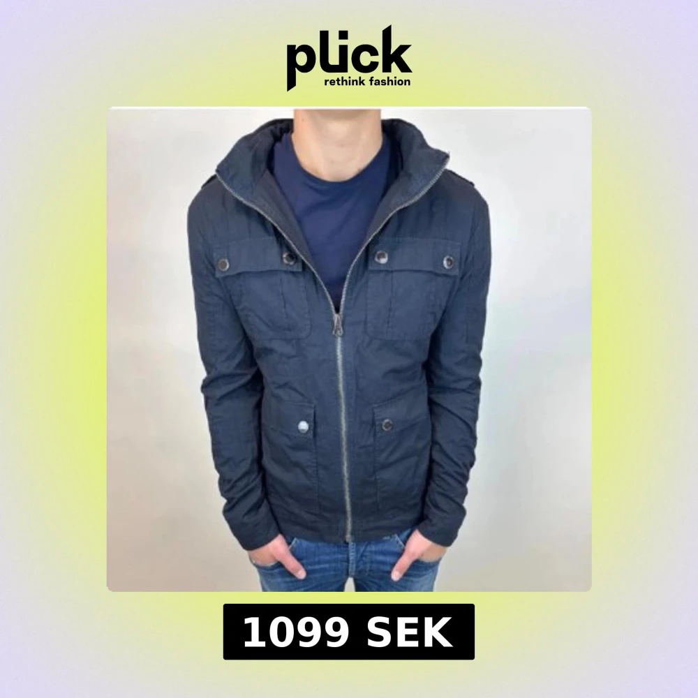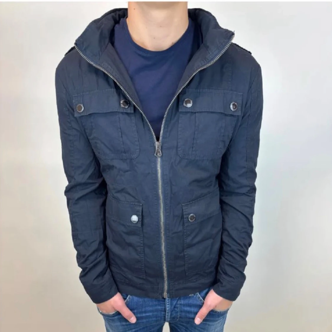 Snygg mörkblå vindjacka med huva och dragkedja framtill. Jackan har fyra fickor med knappstängning och en stilren, sportig look. Perfekt för dig som gillar enkel och clean stil. Passar till jeans och t-shirt för en chill vibe.