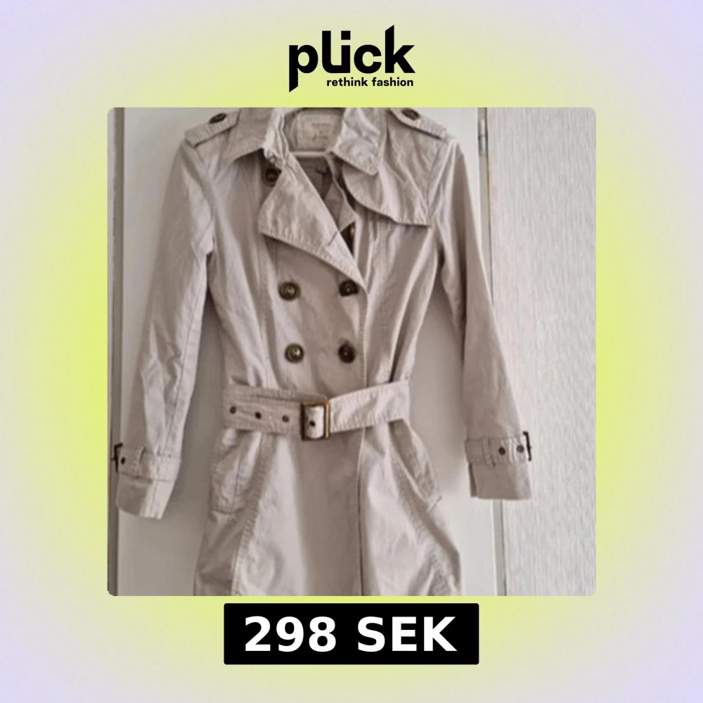 Stilren beige trenchcoat från Stradivarius med klassisk dubbelknäppning, axelklaffar och bälte i midjan, ända gjort från italien, det passar även dig som är S o XS💕