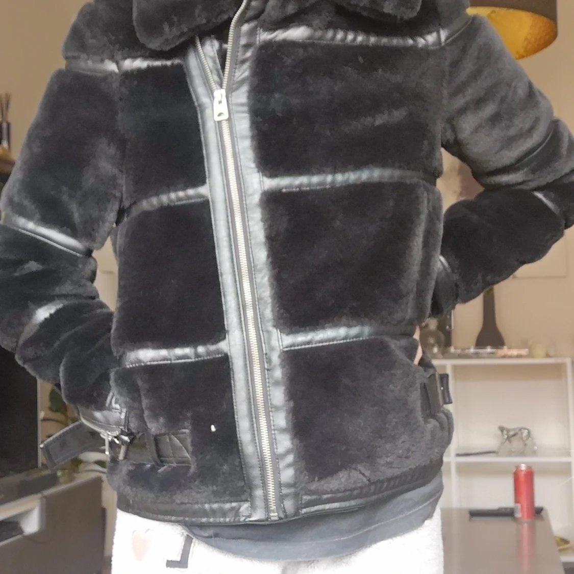 Supersnygg jacka med fuskpäls och fuskläder. Toppskick
