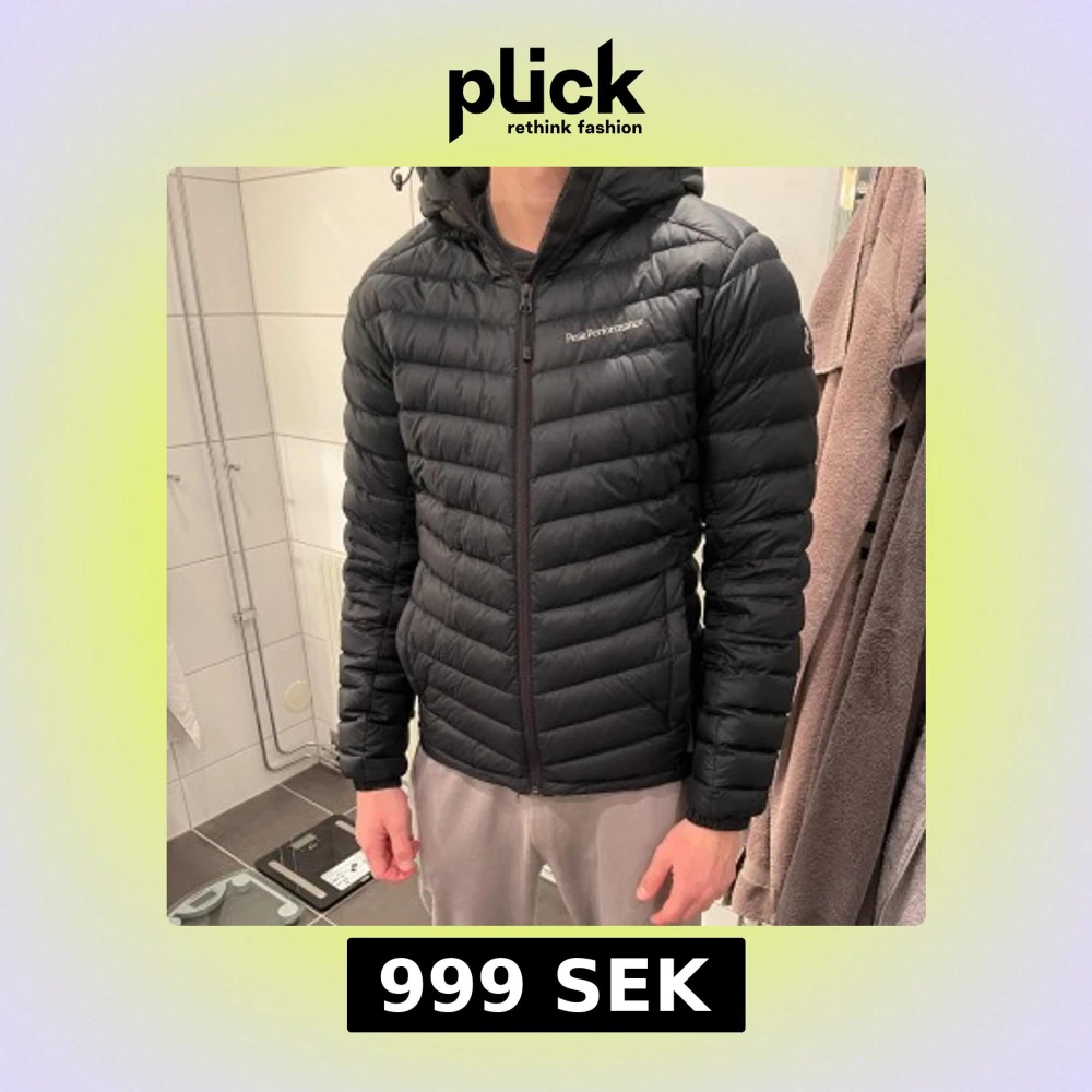 Snygg och stilren svart dunjacka från Peak Performance. Jackan har en dragkedja framtill och är långärmad med en huva för extra värme. Perfekt för kyliga dagar. Sparsamt använd.