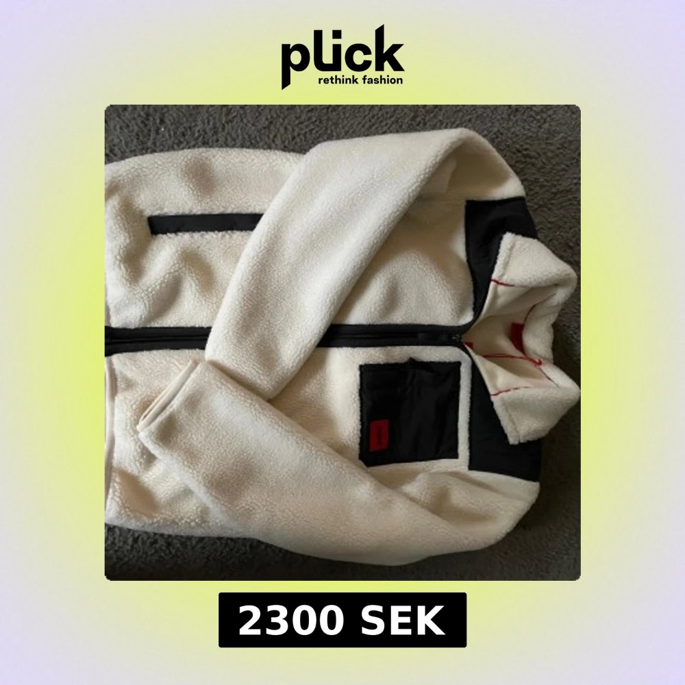 Säljer en stilren vit fleecejacka från Hugo med svarta detaljer. Jackan har en dragkedja framtill och en praktisk ficka på bröstet. Perfekt för kyliga dagar. Det är helt oanvänd